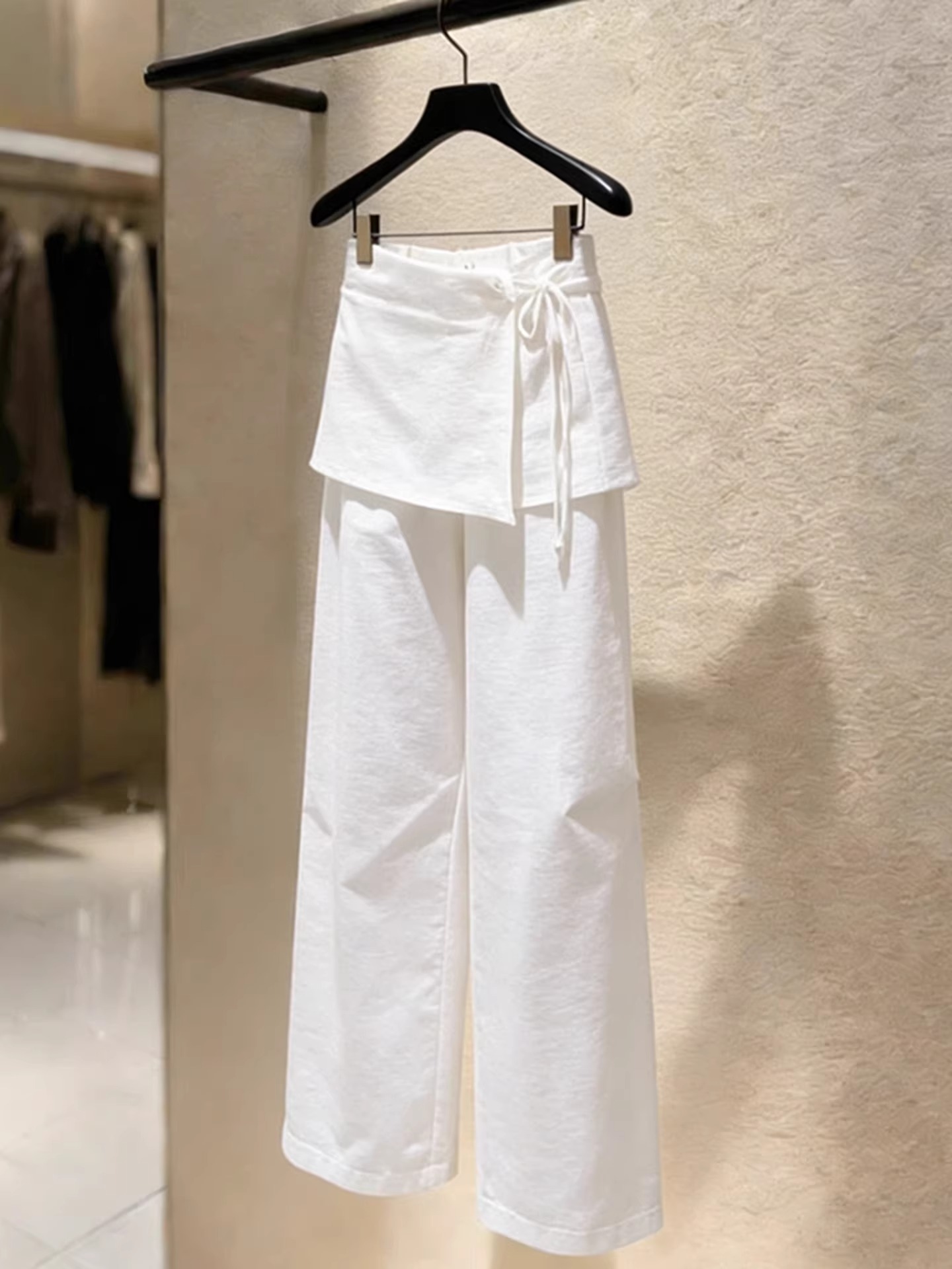 2026 새로운 배 모양 몸 스트레이트 팬츠 패션 외국 가스 빛 럭셔리 고급 센스 화이트 방귀 커튼 캐주얼 바지 여성 봄