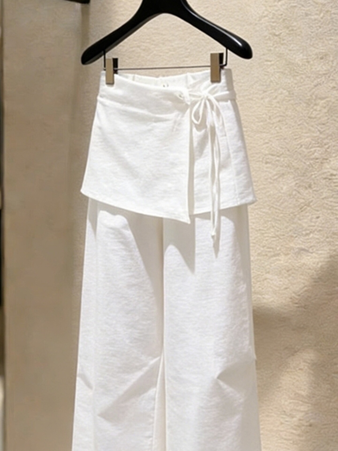 베이지 색 펌프 로프 주름 와이드 레그 팬츠 치마 여성 2026 봄 여름 새로운 빅 사이즈 루즈핏 도루 가을 센스 캐주얼 바지 치마바지