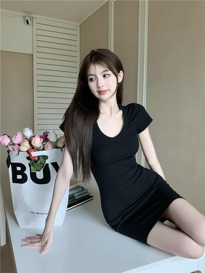 실사 정가 홀로우 아웃 섹시함 이슬 쇄골 반팔 심장 기계 몸매 가꾸기 슬림해 보이는 티셔츠 맨위