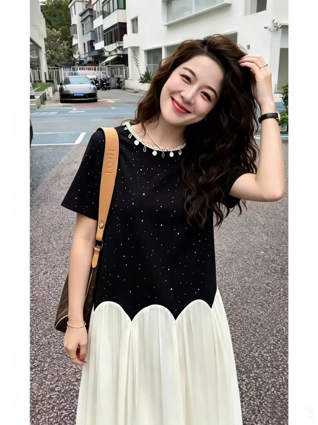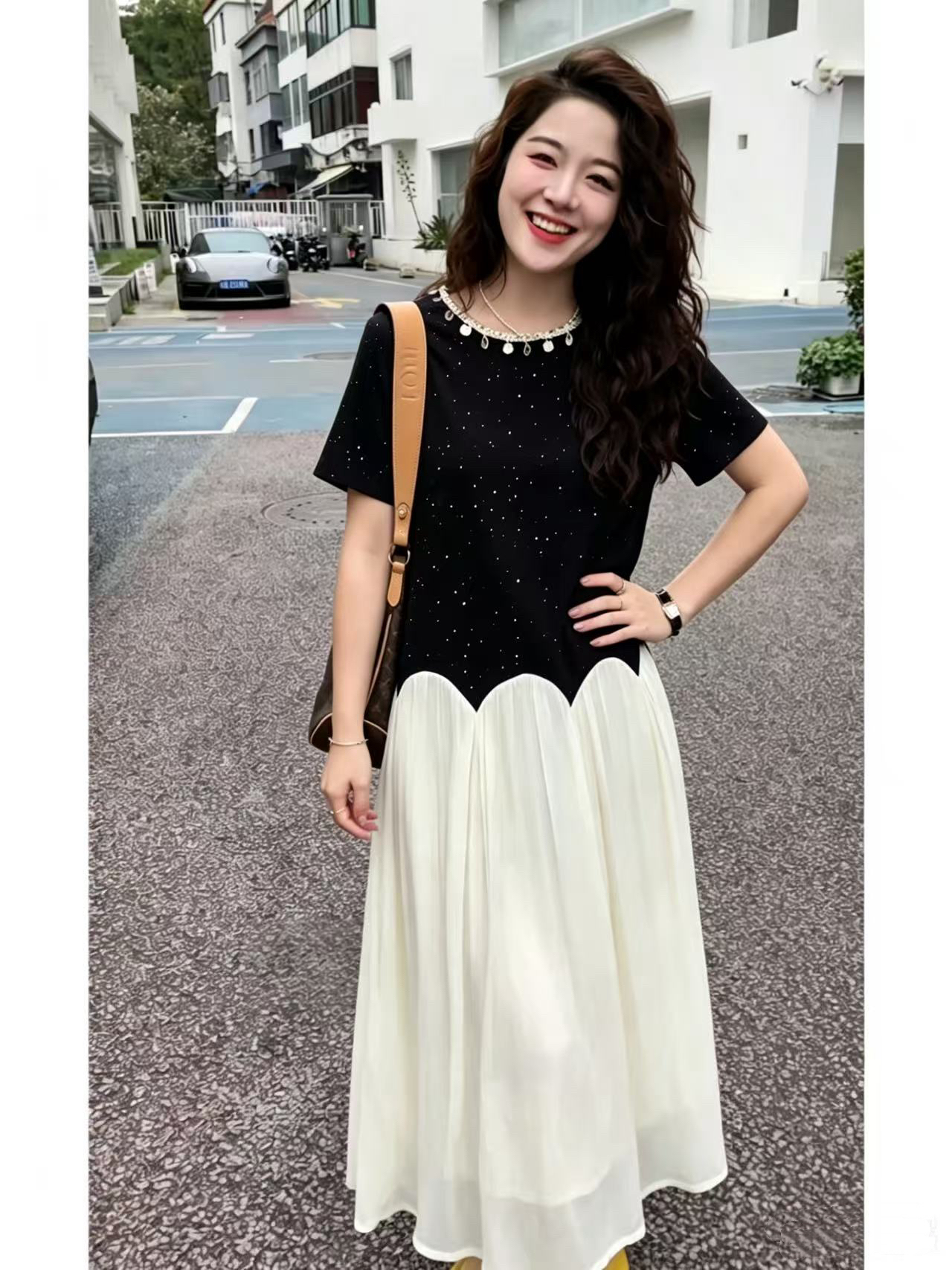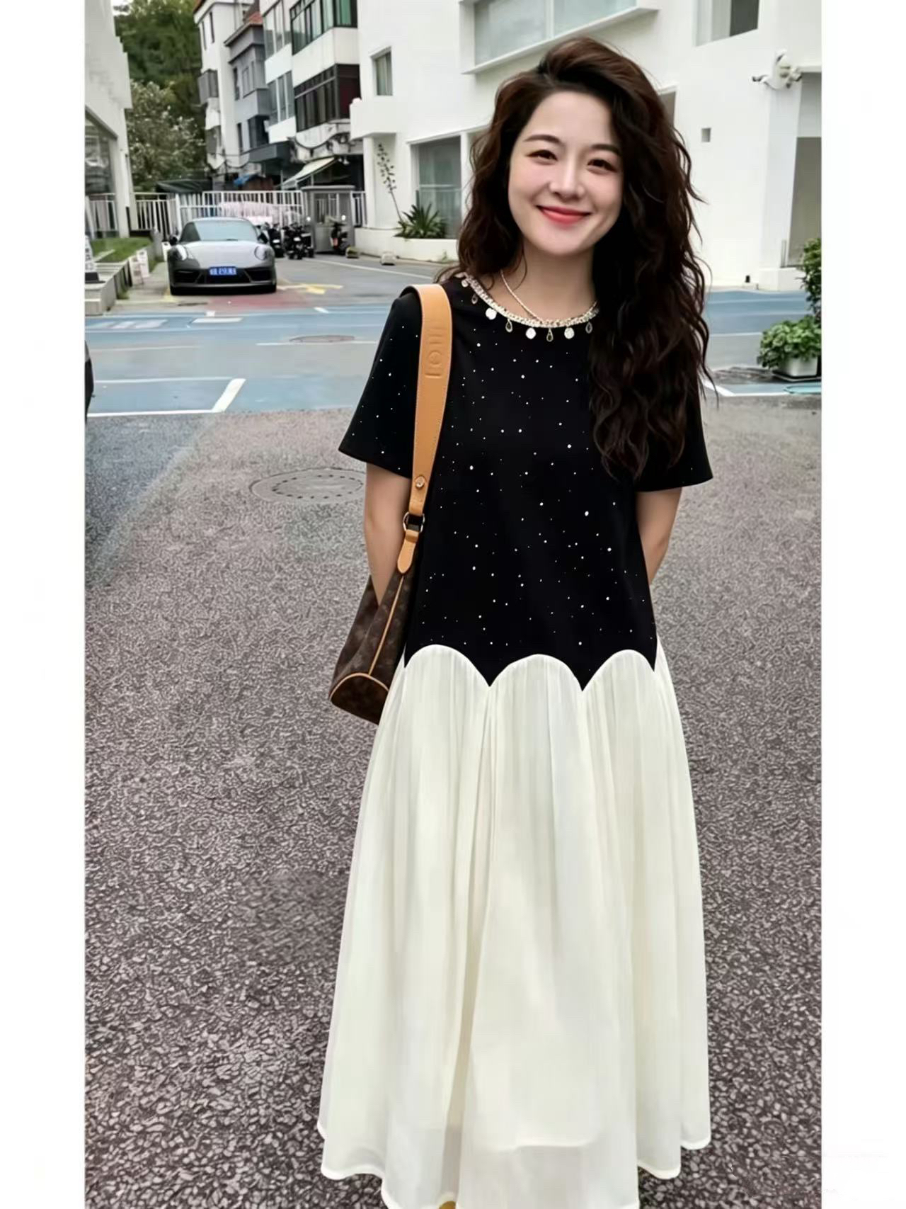 새로운 루즈핏 표지 넓적 다리 슬림해 보이는 수유 드레스 프랑스식 품격 작은 검은 드레스