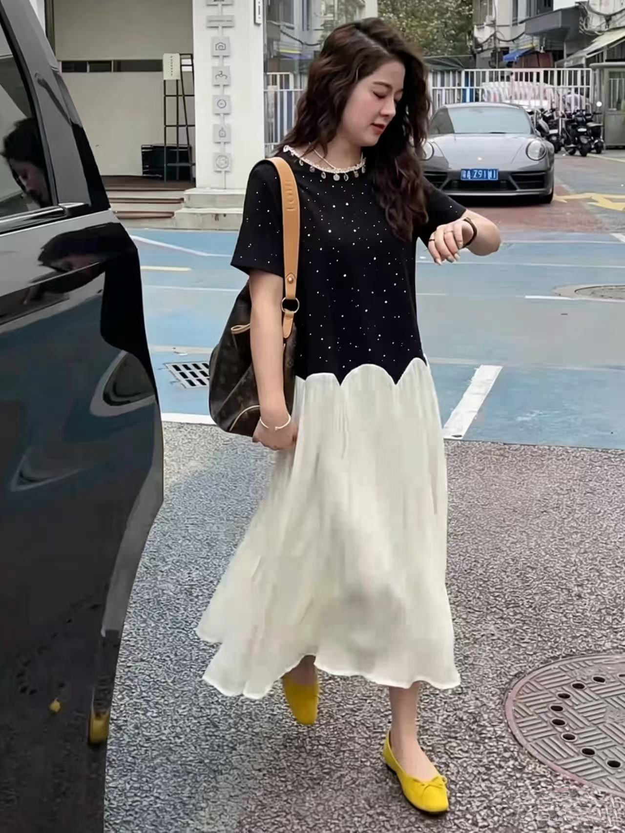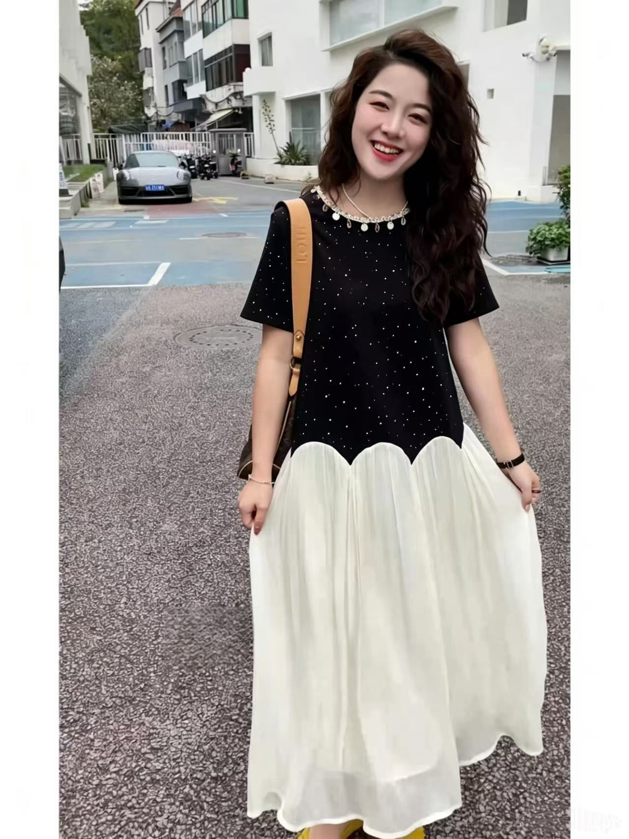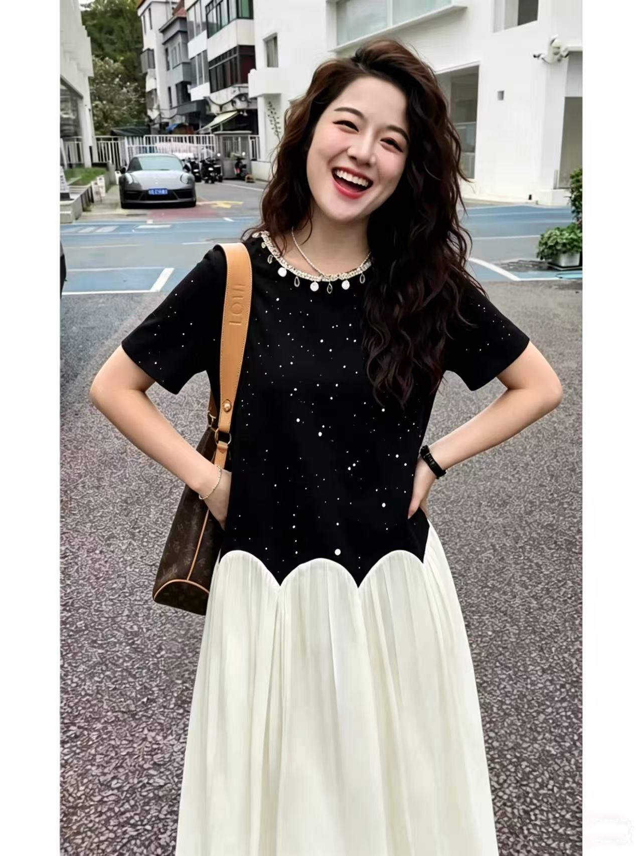 새로운 루즈핏 표지 넓적 다리 슬림해 보이는 수유 드레스 프랑스식 품격 작은 검은 드레스