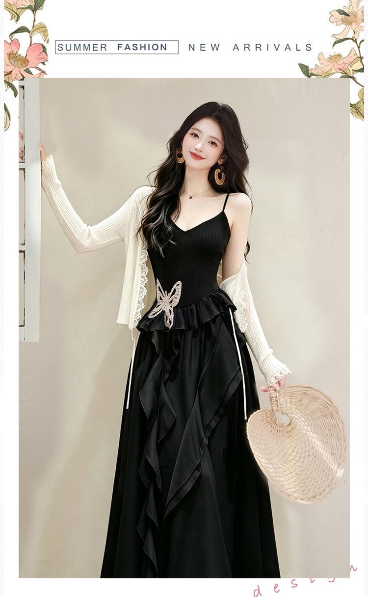 언어 그리스어 진짜 사진 찍기 새로운 검정색 디자인 센스 슬립 드레스 코디 재킷 투피스 세트 세트 드레스
