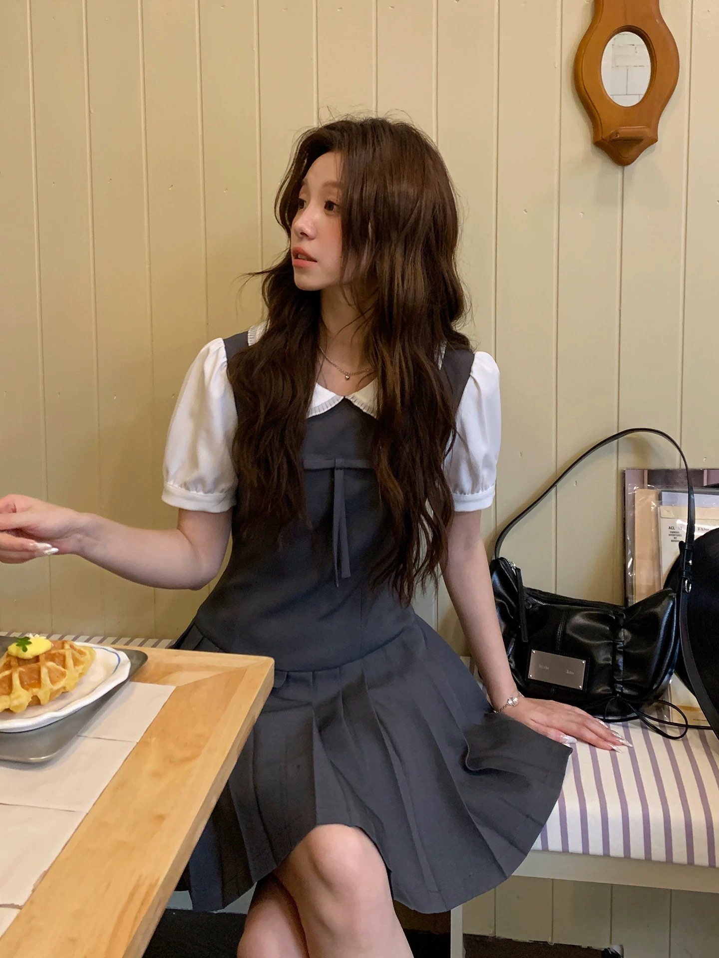 even 하나 원자바오 높음 지혜 miu 왕 한 부서 높음 지혜 센스 페이크 레이어드 miu 부서 드레스 학원 스타일 플리츠 짧은