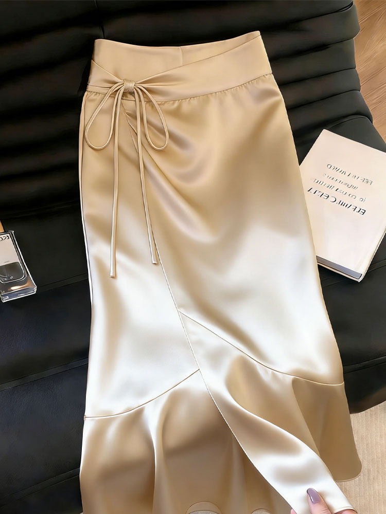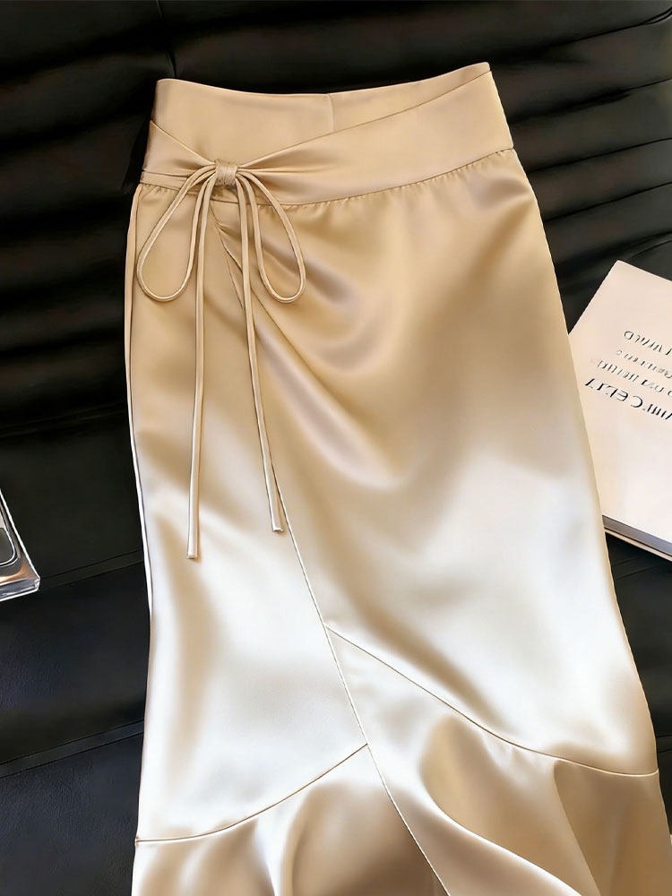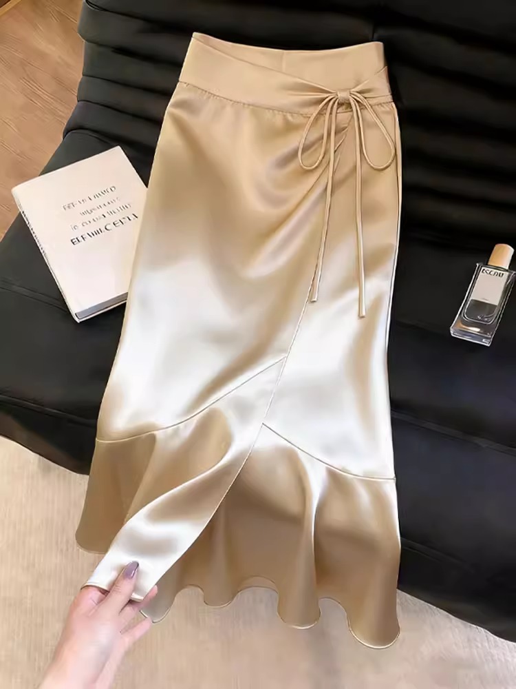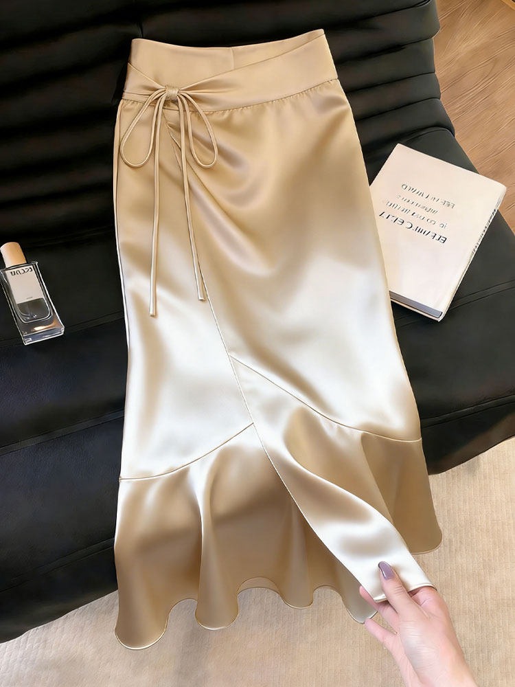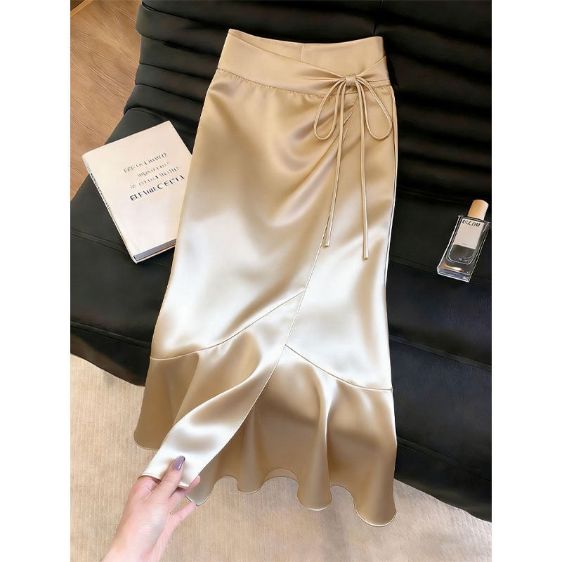 샴페인 트임 디자인 센스 반 스커트 여성 2026 여름 새로운 기질 우아함 질감 빛 럭셔리 바람 치마