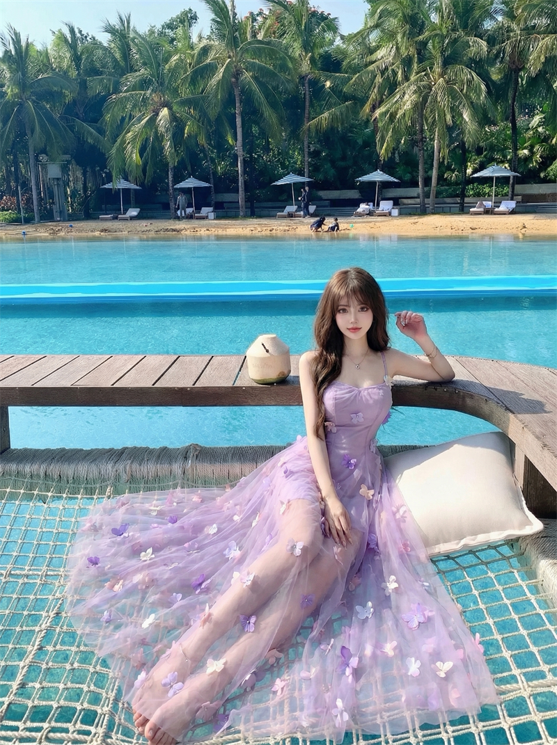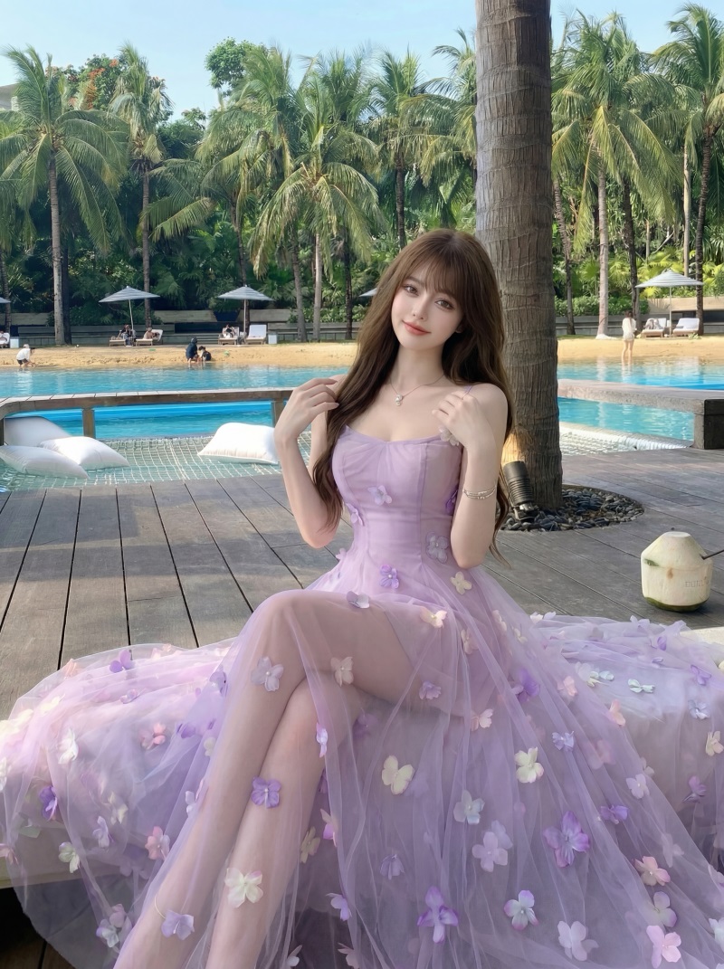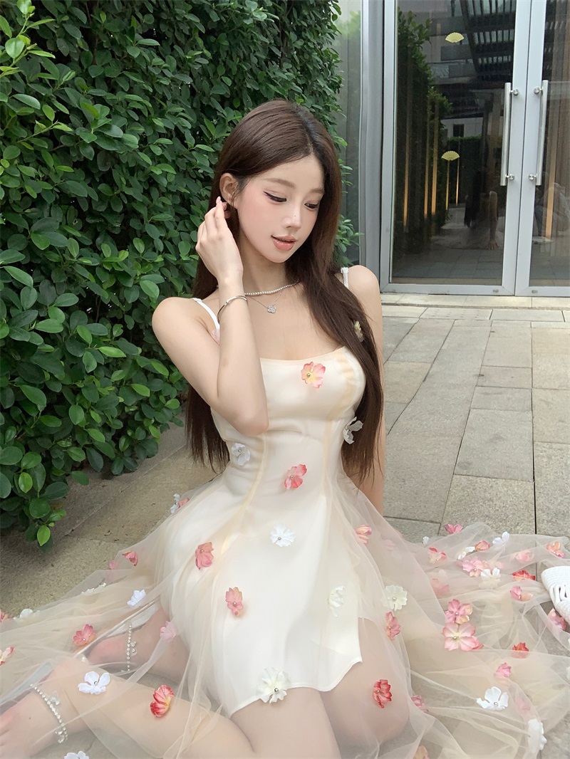 실사 정가 부드러운 욕망 아름다움 무거운 작업 레이스 망사 순수한 욕망 휴가 롱 스커트 여름 아름다운 슬립 드레스