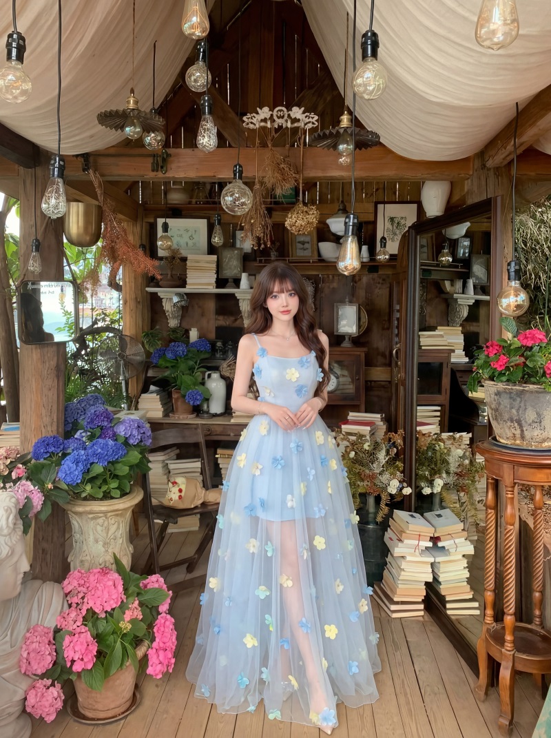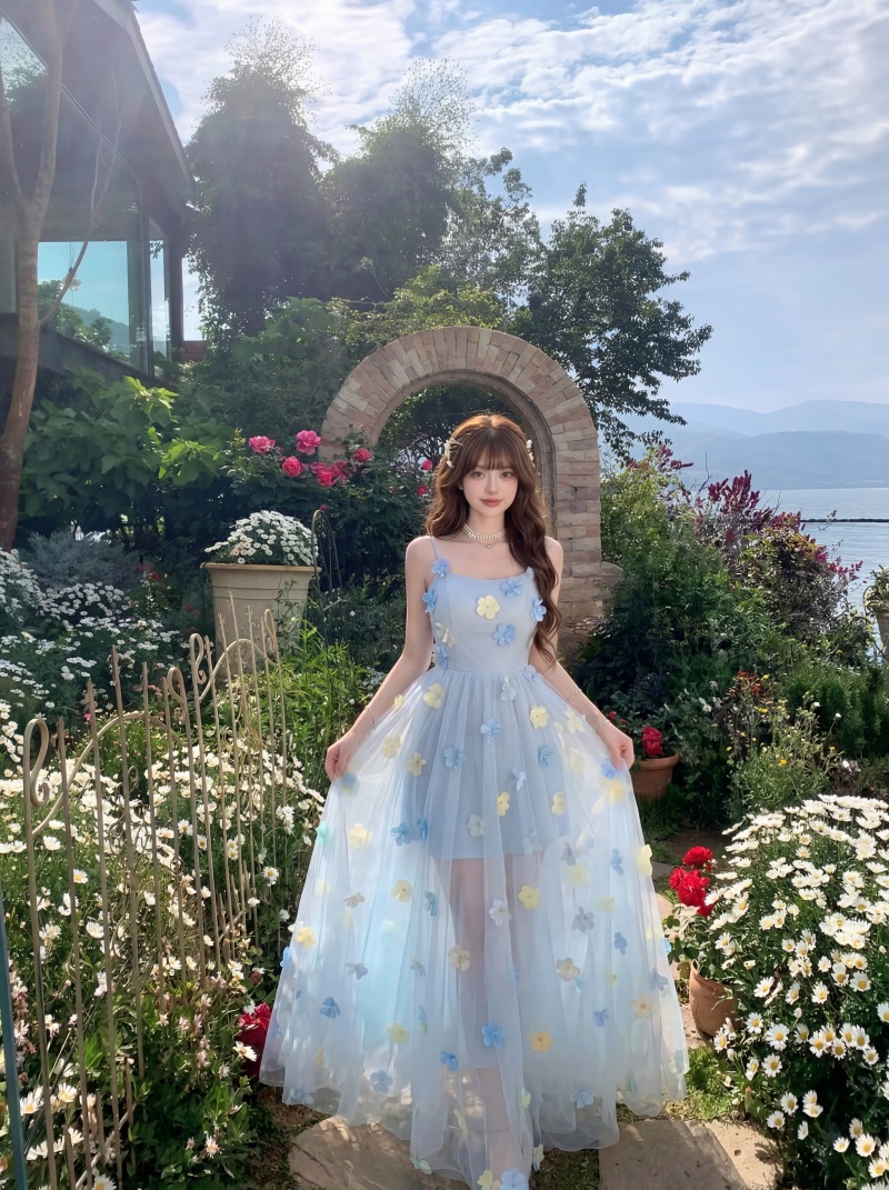 실사 정가 프랑스식 부드러운 낭만주의 3 차원 꽃 패션 품격 슬립 드레스