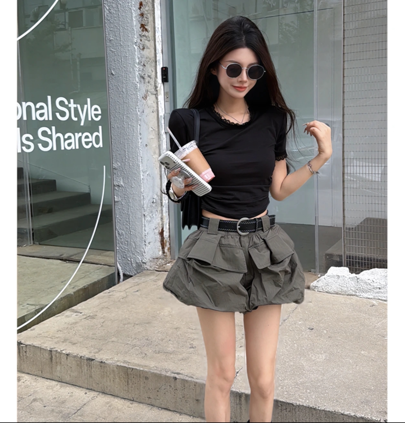 스타 가로장 여름 여자 미니멀리즘 루즈핏 맨위 반바지 캐주얼 세트