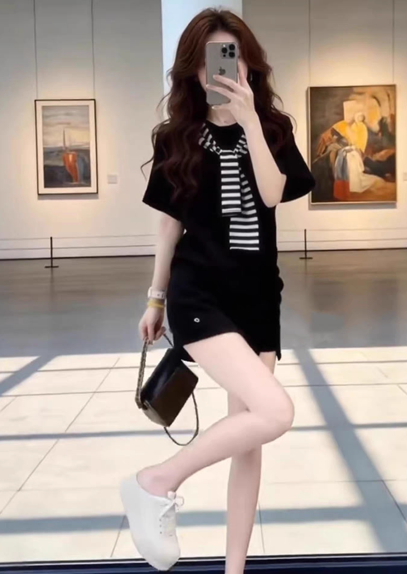 wu11 오리지널 다용도 라운드 넥 루즈핏 반팔 티셔츠 허리 인감 높은 허리 바지 패션 3종 세트 vv041506