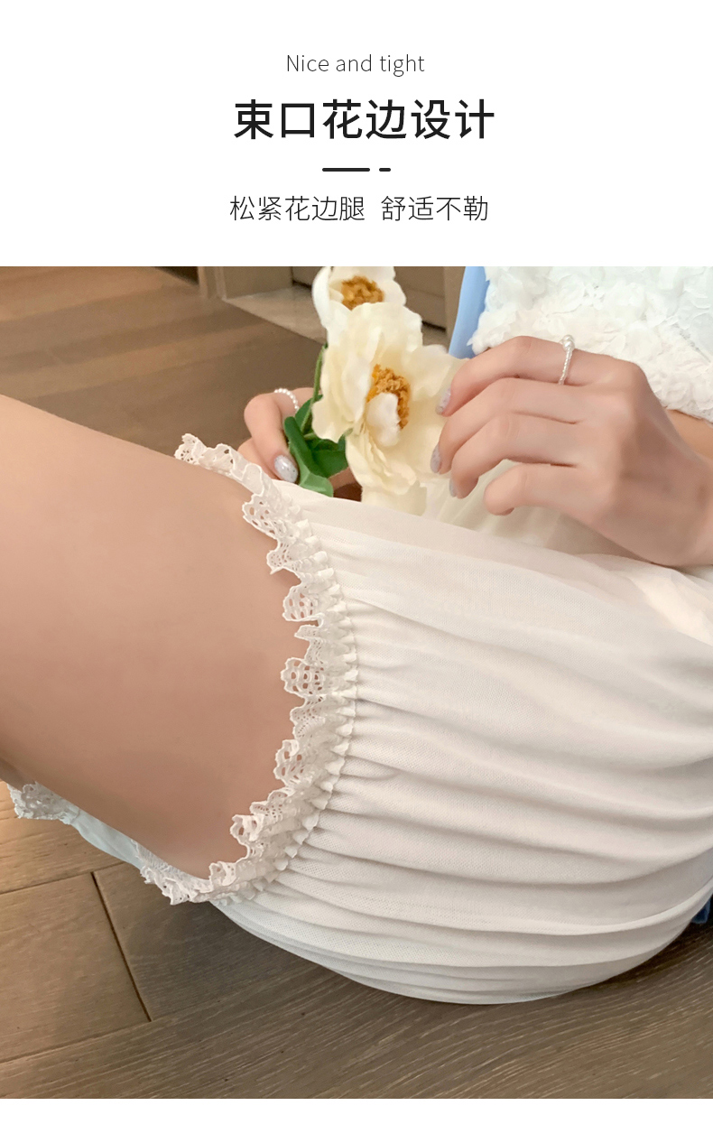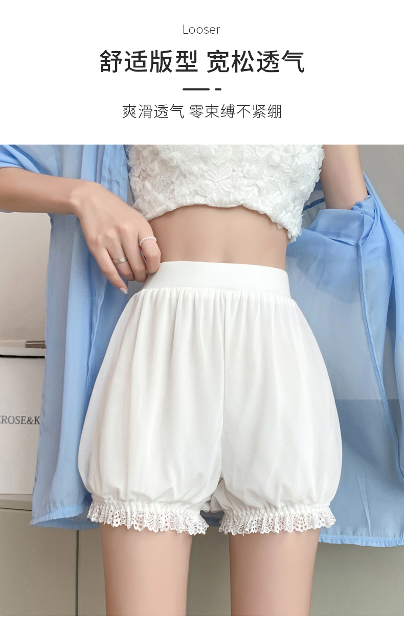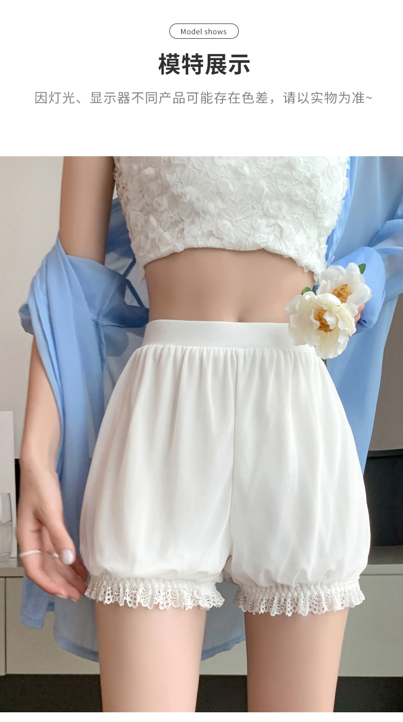 화이트 레이스 안전 바지 여성 여름 얇은 스타일 노출 방지 바지 외출용 루즈핏 이중층 쉬폰 만나는 짧은 바지