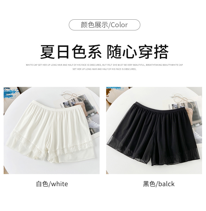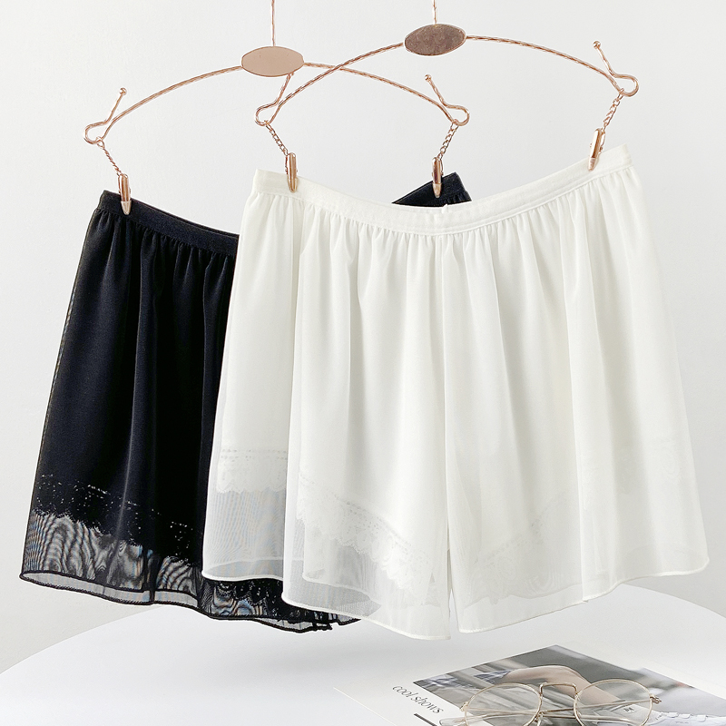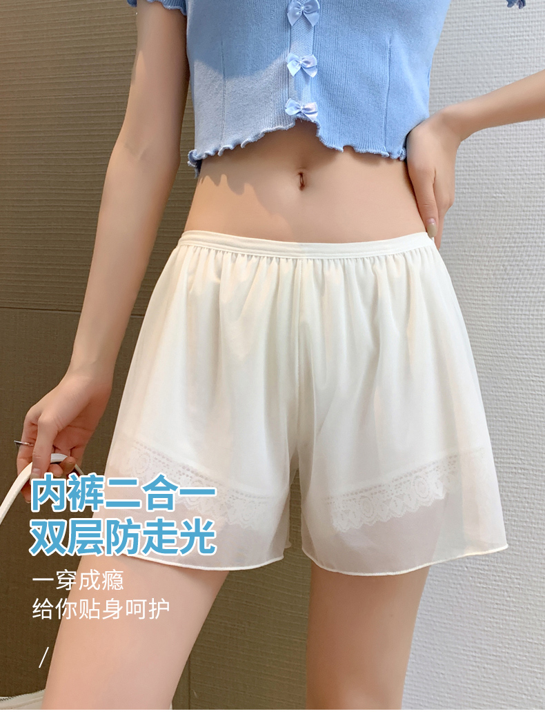 화이트 레이스 안전 바지 여성 여름 얇은 스타일 노출 방지 바지 외출용 루즈핏 이중층 쉬폰 만나는 짧은 바지