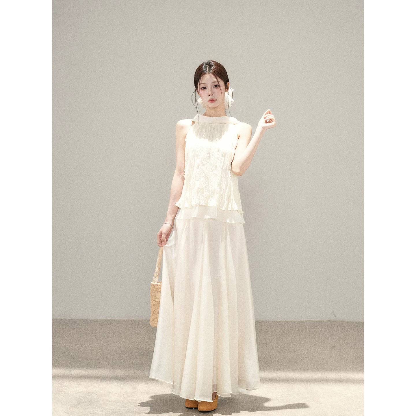 신제품 85 접기 하늘색 줘 너 쉬폰 세트 barb chill 행침 목 맨위 쉬폰 블라우스 길다 반 스커트