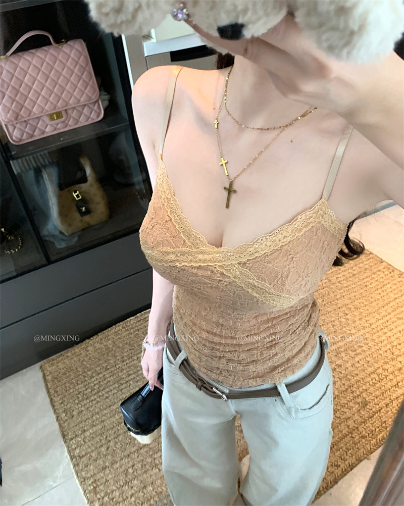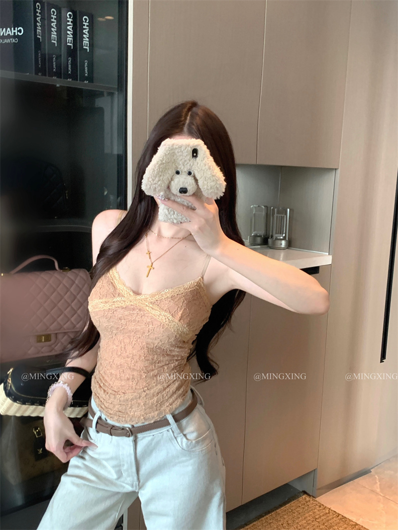 디자인 센스 화이트 레이스 조각 긍정적 인 어깨 반팔 티셔츠 여성 봄 여름 새로운 몸매 가꾸기 슬림해 보이는 Chic 레이스 맨위