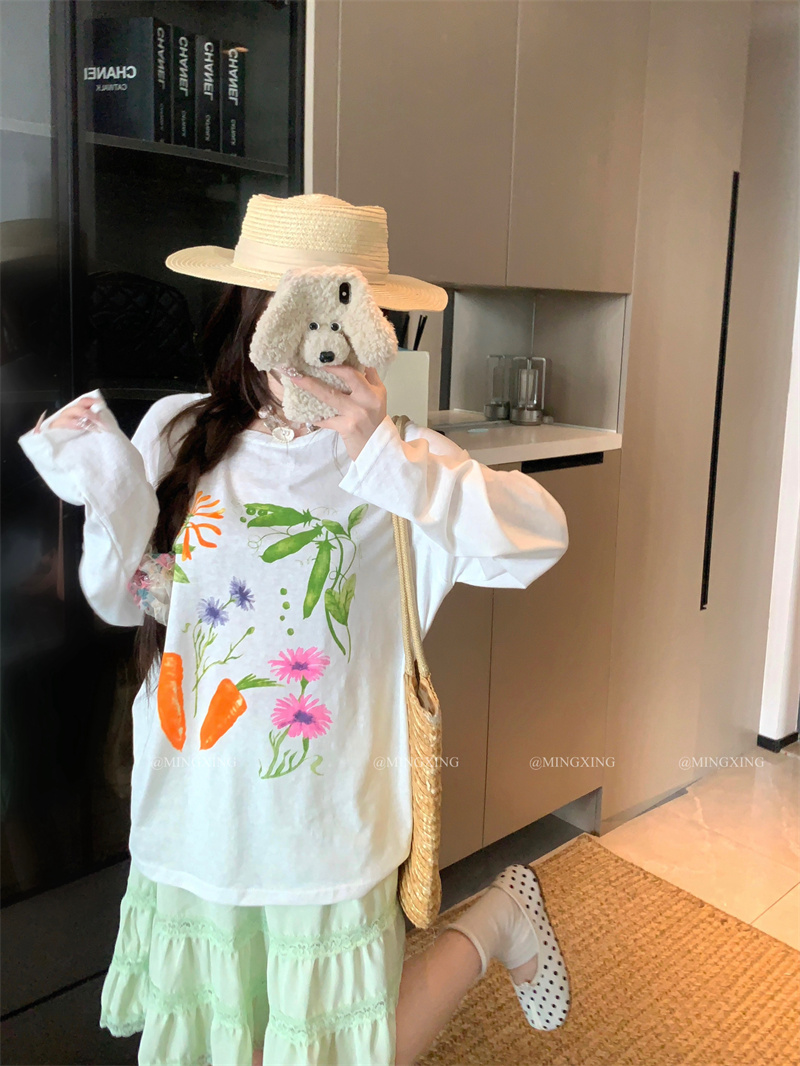 실사 정가 달콤함 일본식 느긋한 루즈핏 긴팔 자외선 차단 티셔츠 맨위 하이웨이스트 아름다운 반신 스커트 여성