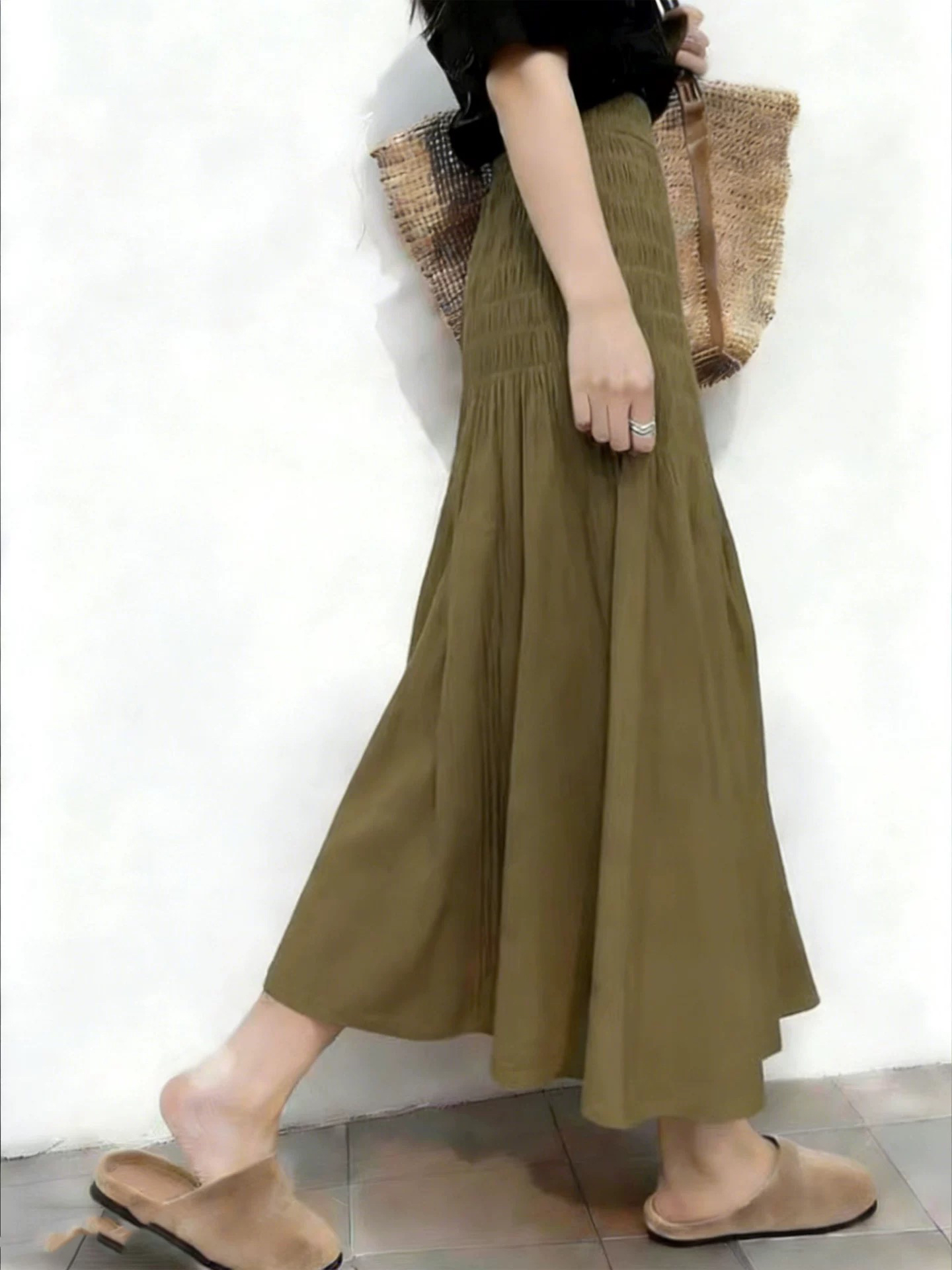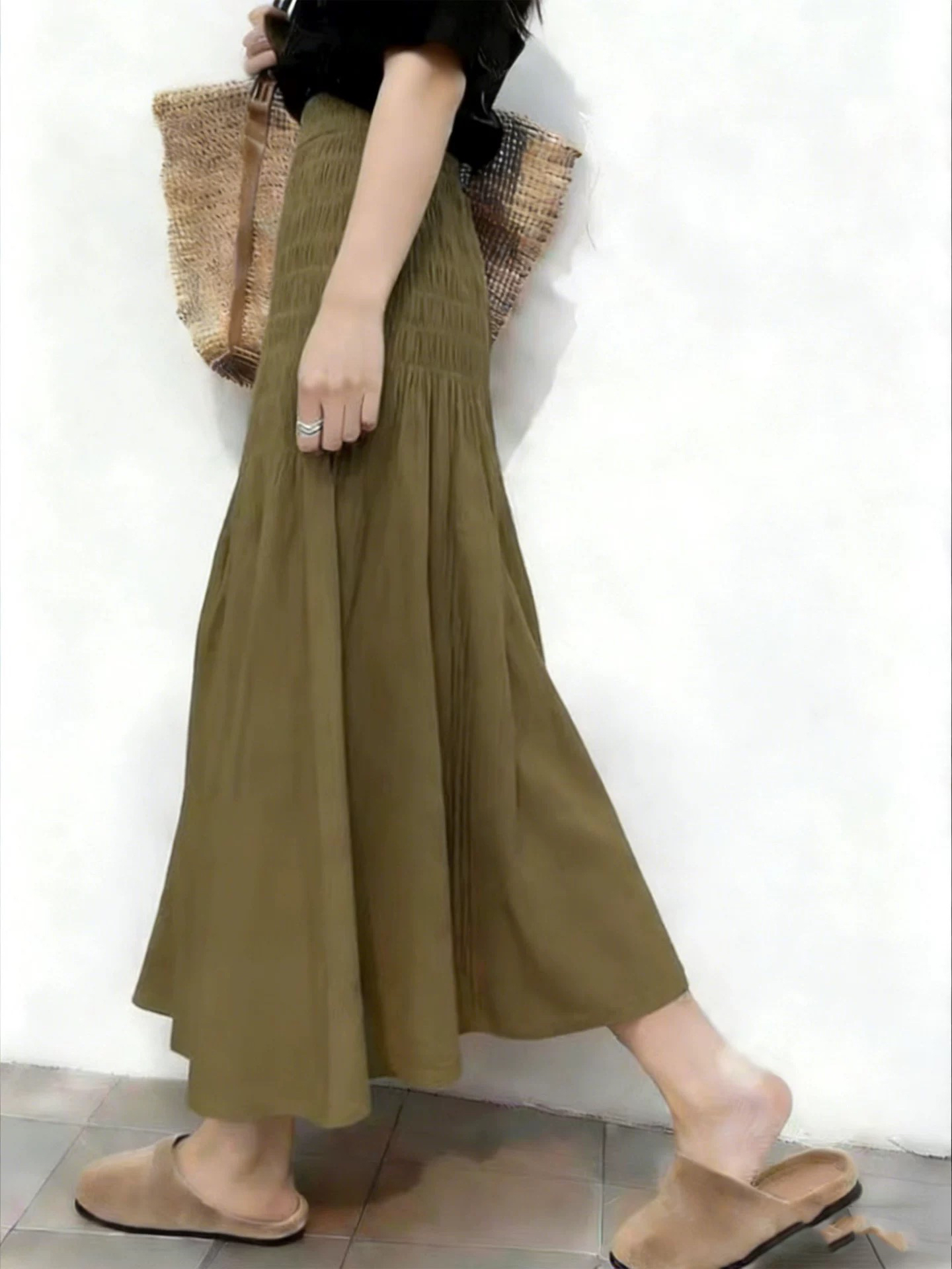 녹색 반신 스커트 여성 2026 여름 새로운 하이웨이스트 슬림해 보이는 프랑스식 패션 품격 성숙한 바람 출퇴근 A라인 스커트