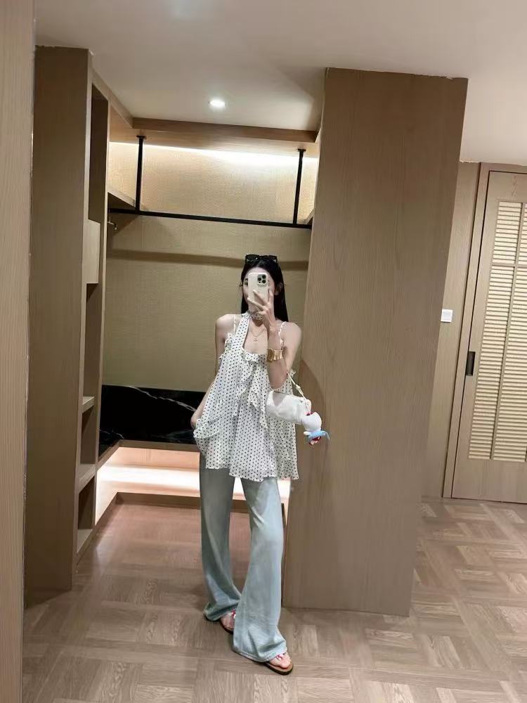 한 부서 레트로 핫걸 품격 도트 무늬 조끼 슬립 여성 루즈핏 슬림해 보이는 경기 리본 다용도 캐주얼 작은 셔츠 맨위