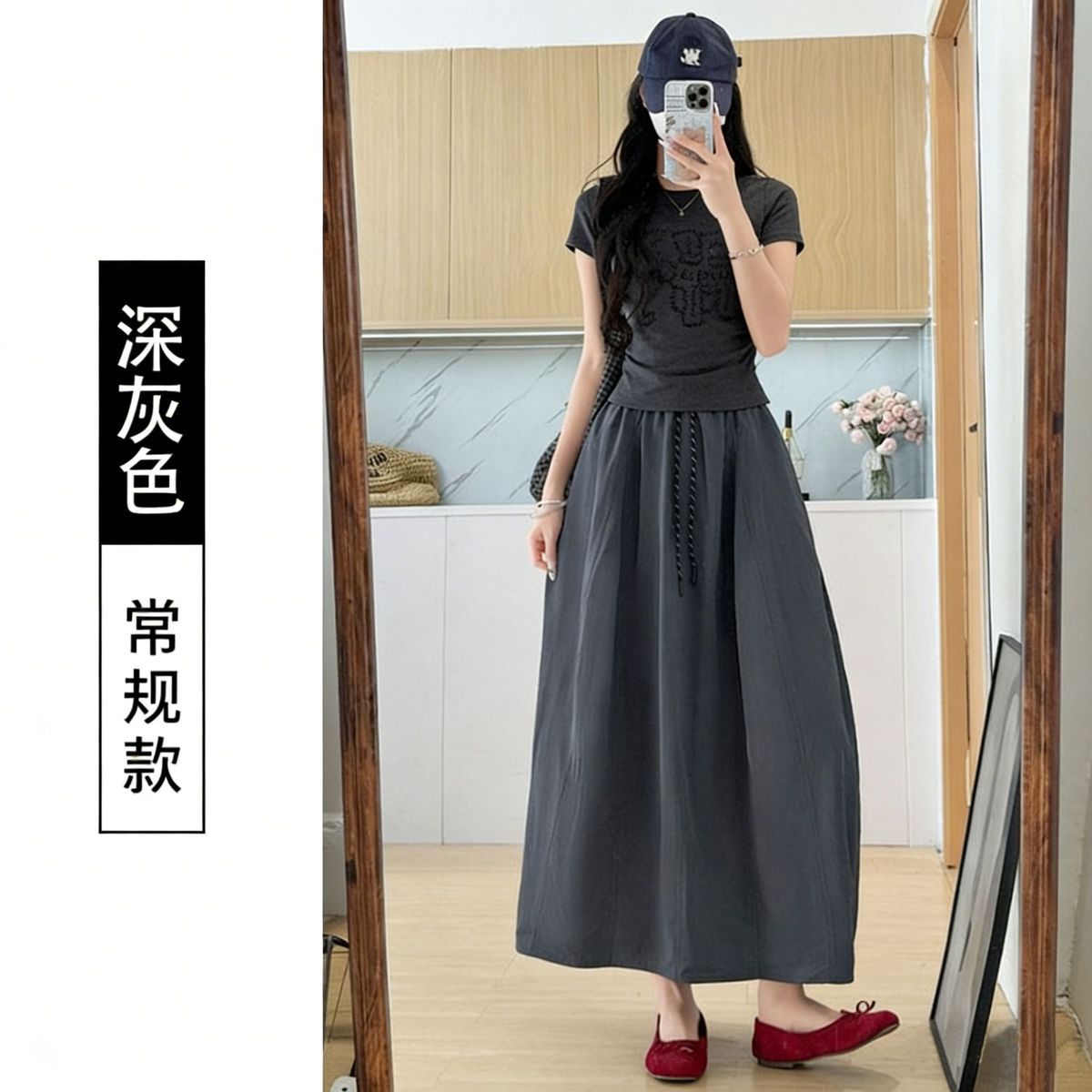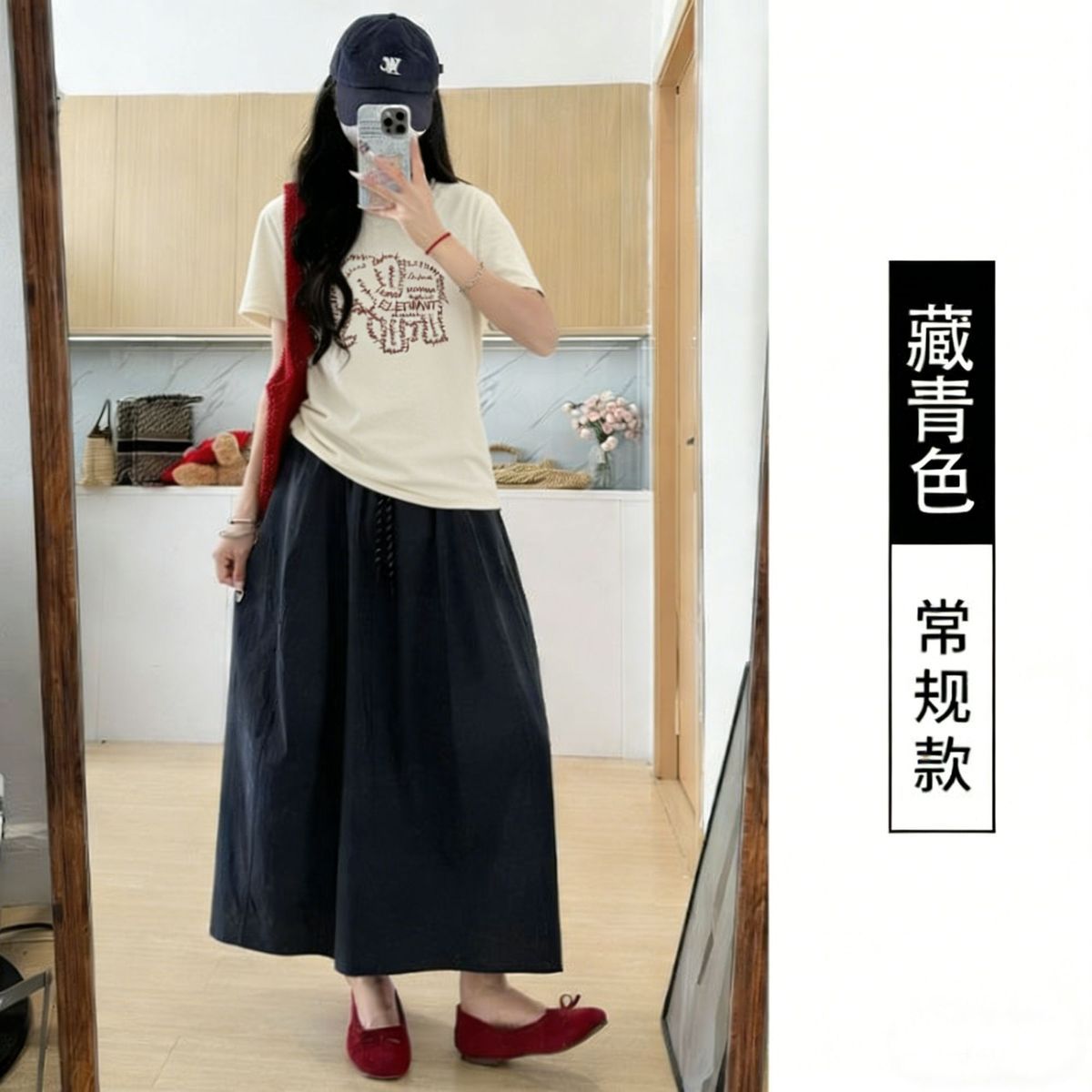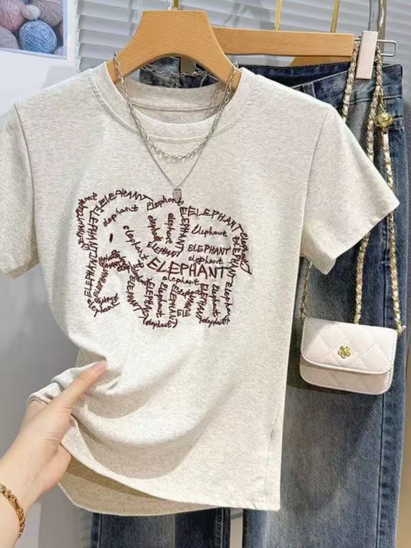 2026 새로운 세트 아기 코끼리 자수 반신 스커트 한 부서 느슨함 센스 배 모양 몸 일상 착용 가져 가라. 투피스 세트