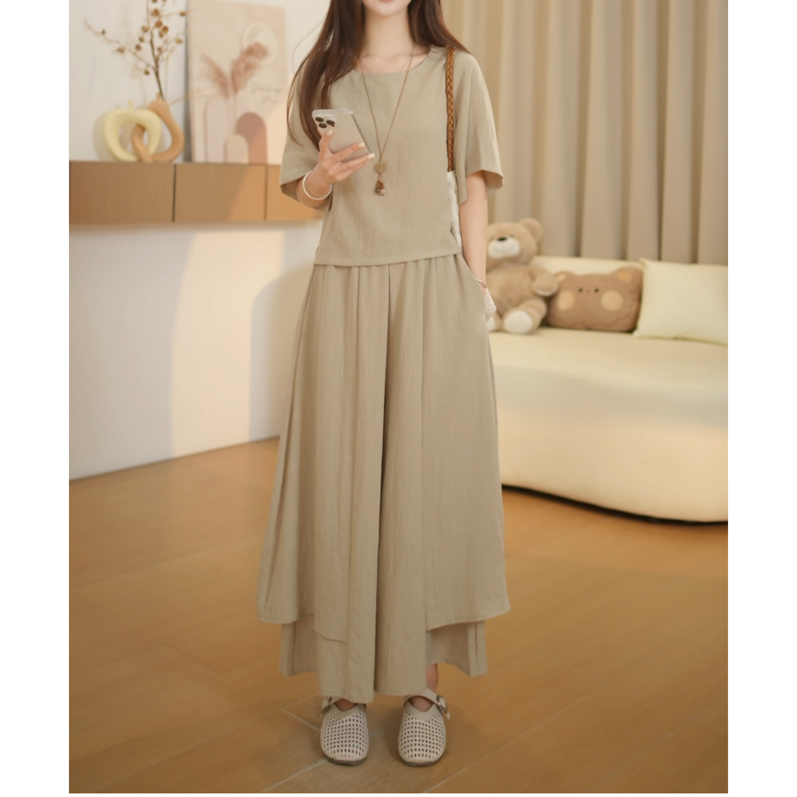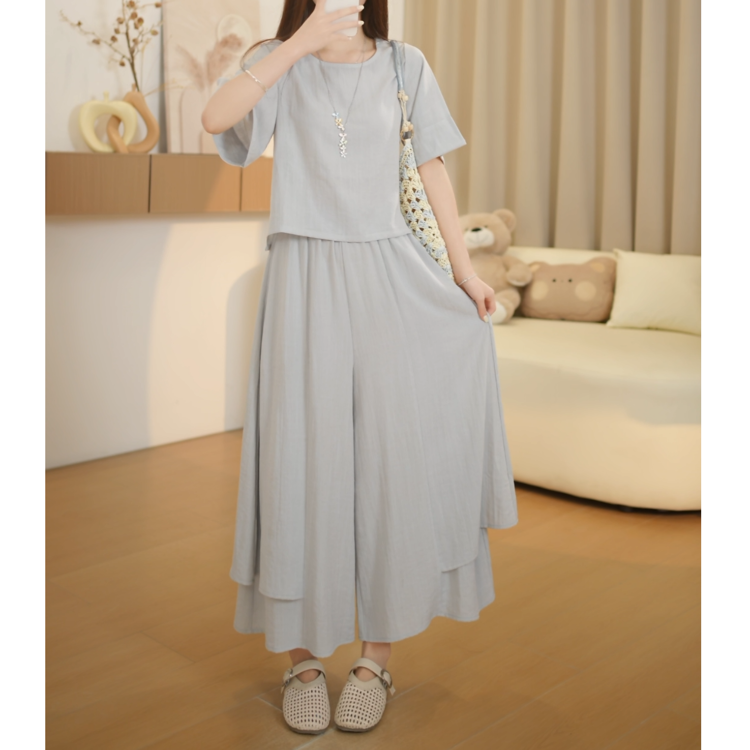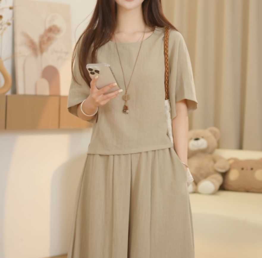 작은 키 2026 여성 여름 캐주얼 루즈핏 얇은 스타일 차가운 센스 단색 세트