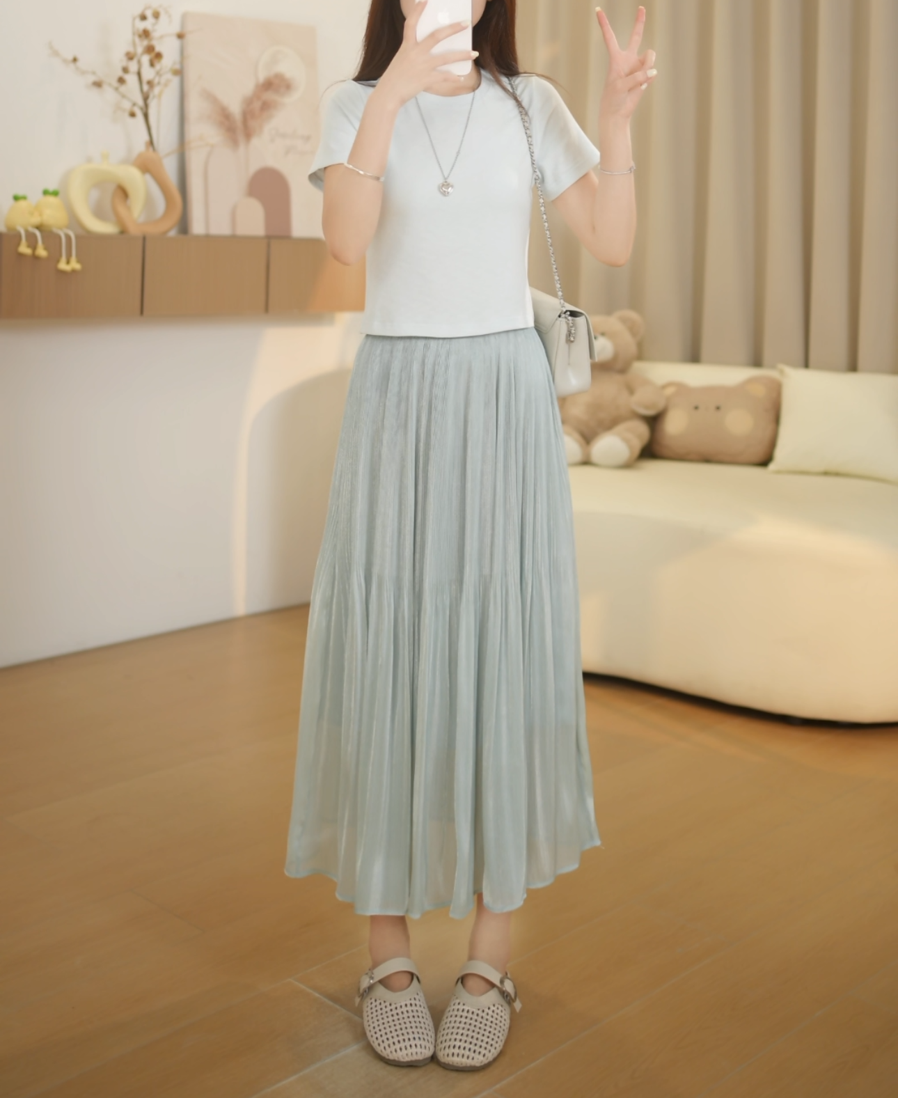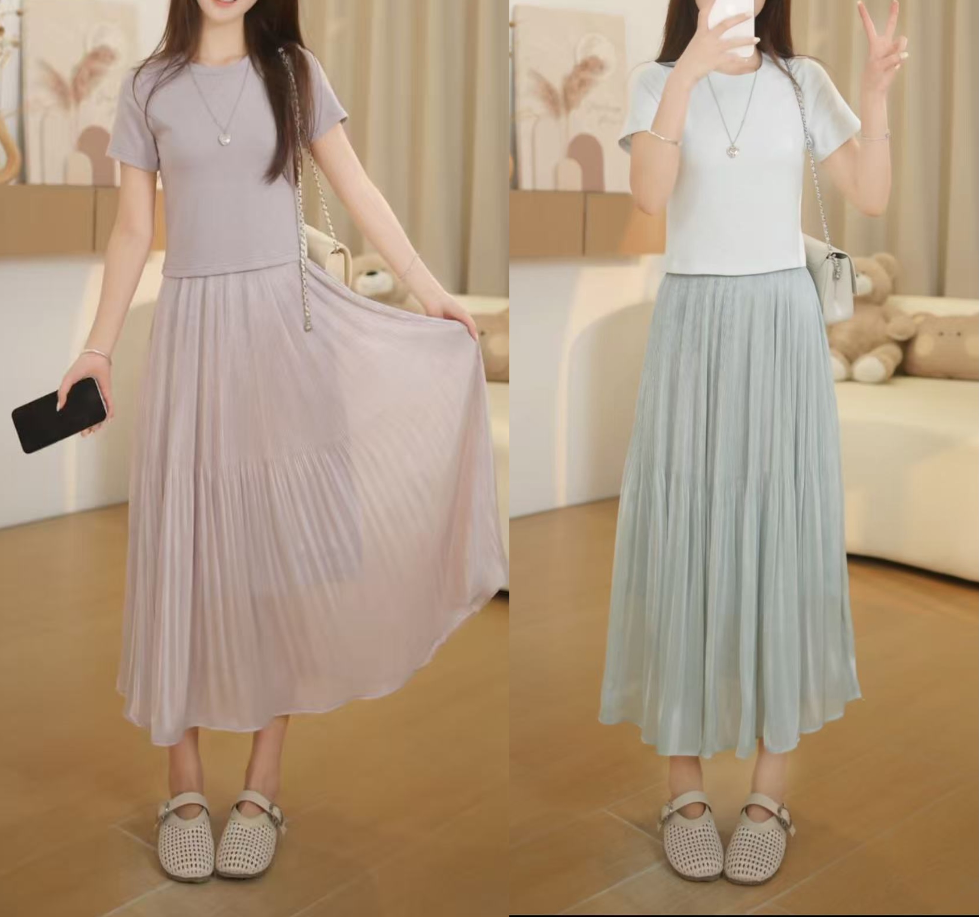 작은 키 세트 여성 2026 여름 새로운 품격 슬림해 보이는 다용도 반팔 티셔츠 치마바지 도루 센스