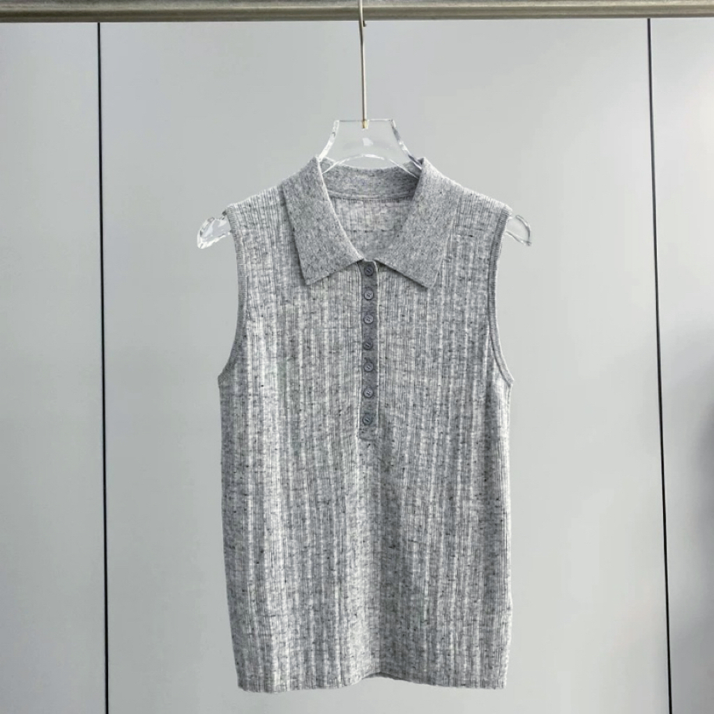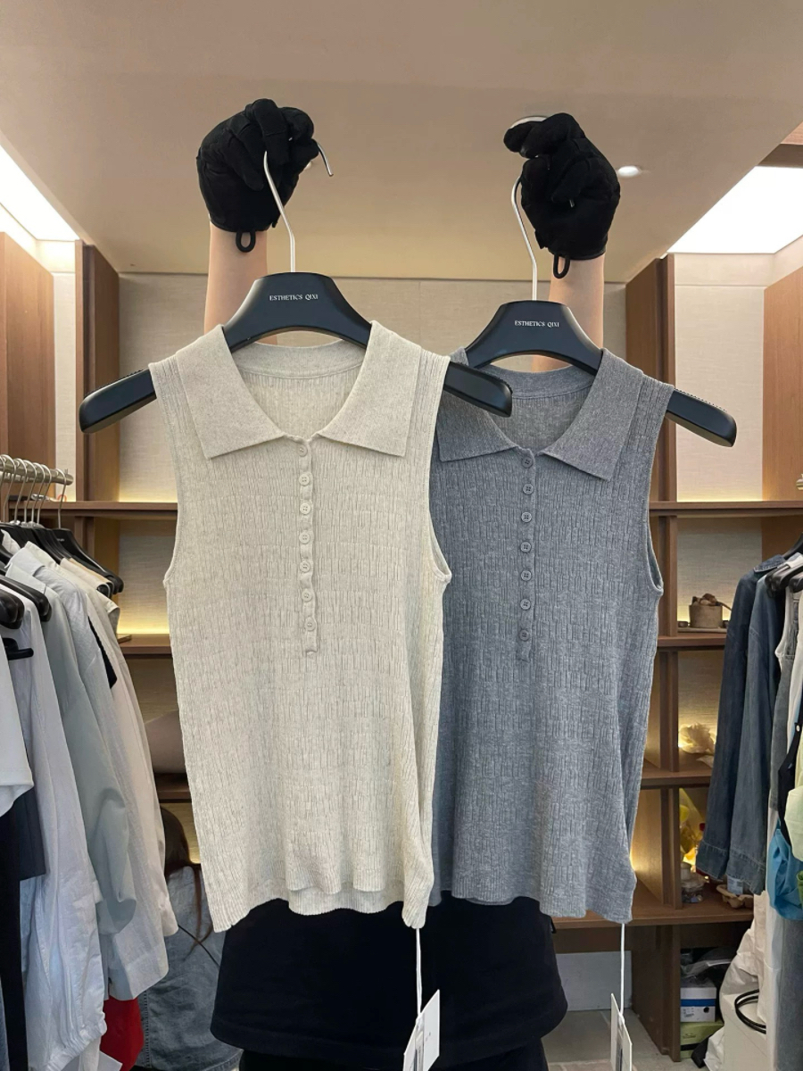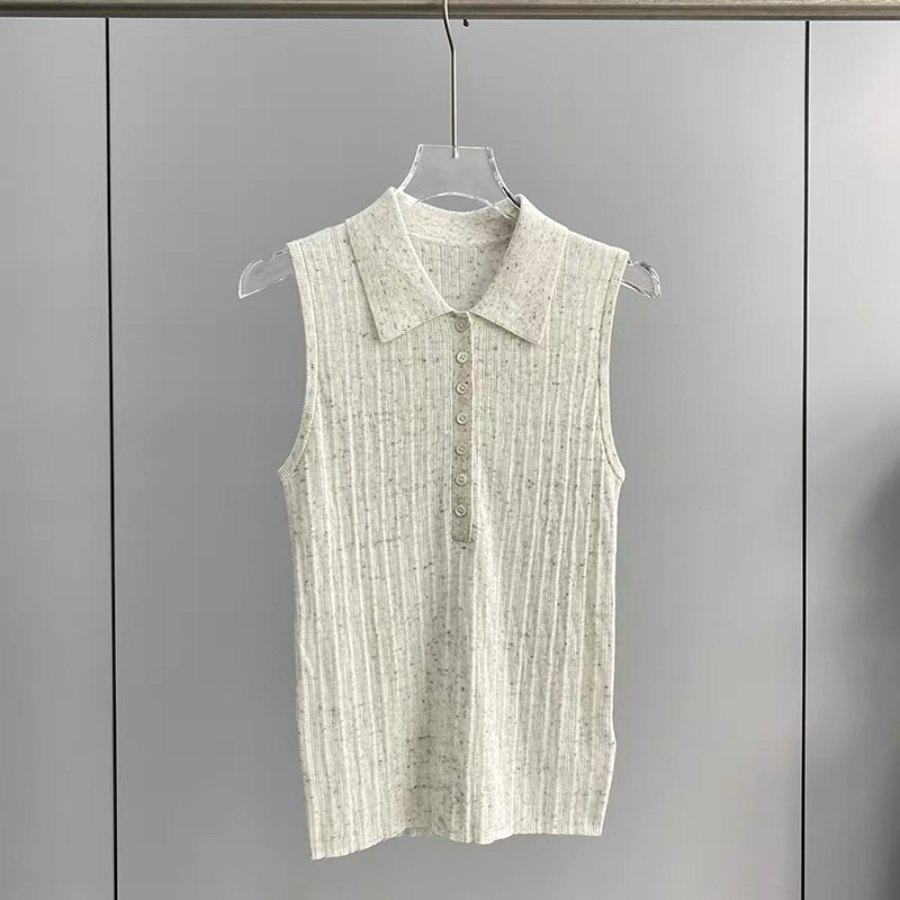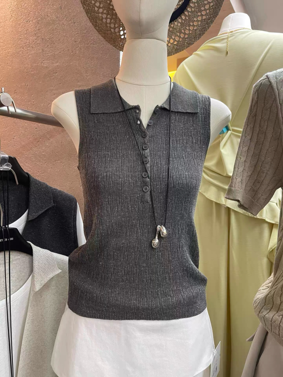 다채로운 실 아마 uu 민소매 POLO 칼라 니트 스웨터 조끼 여성 여름 출퇴근 폴로 칼라 몸매 가꾸기 구덩이 기사 맨위 여성