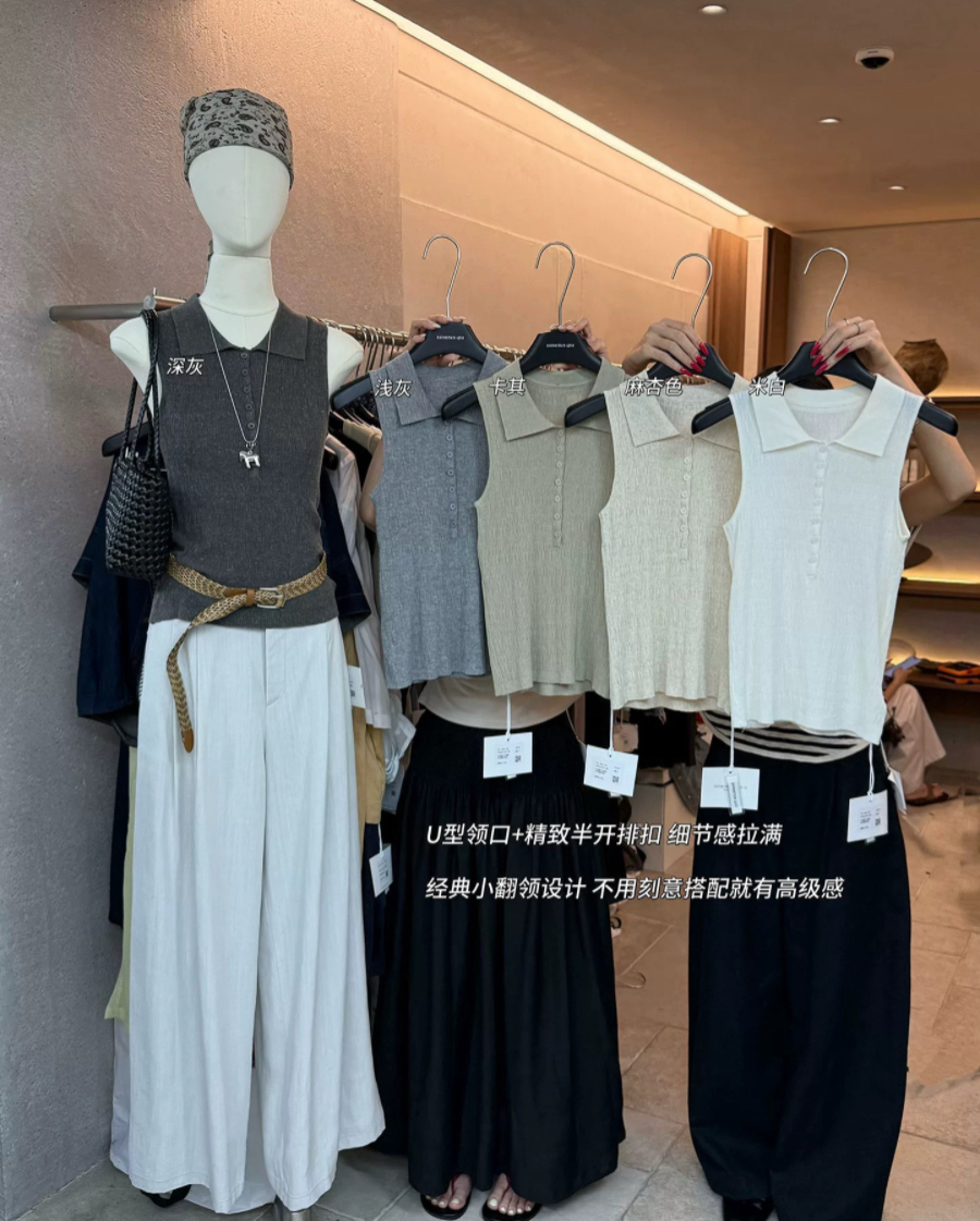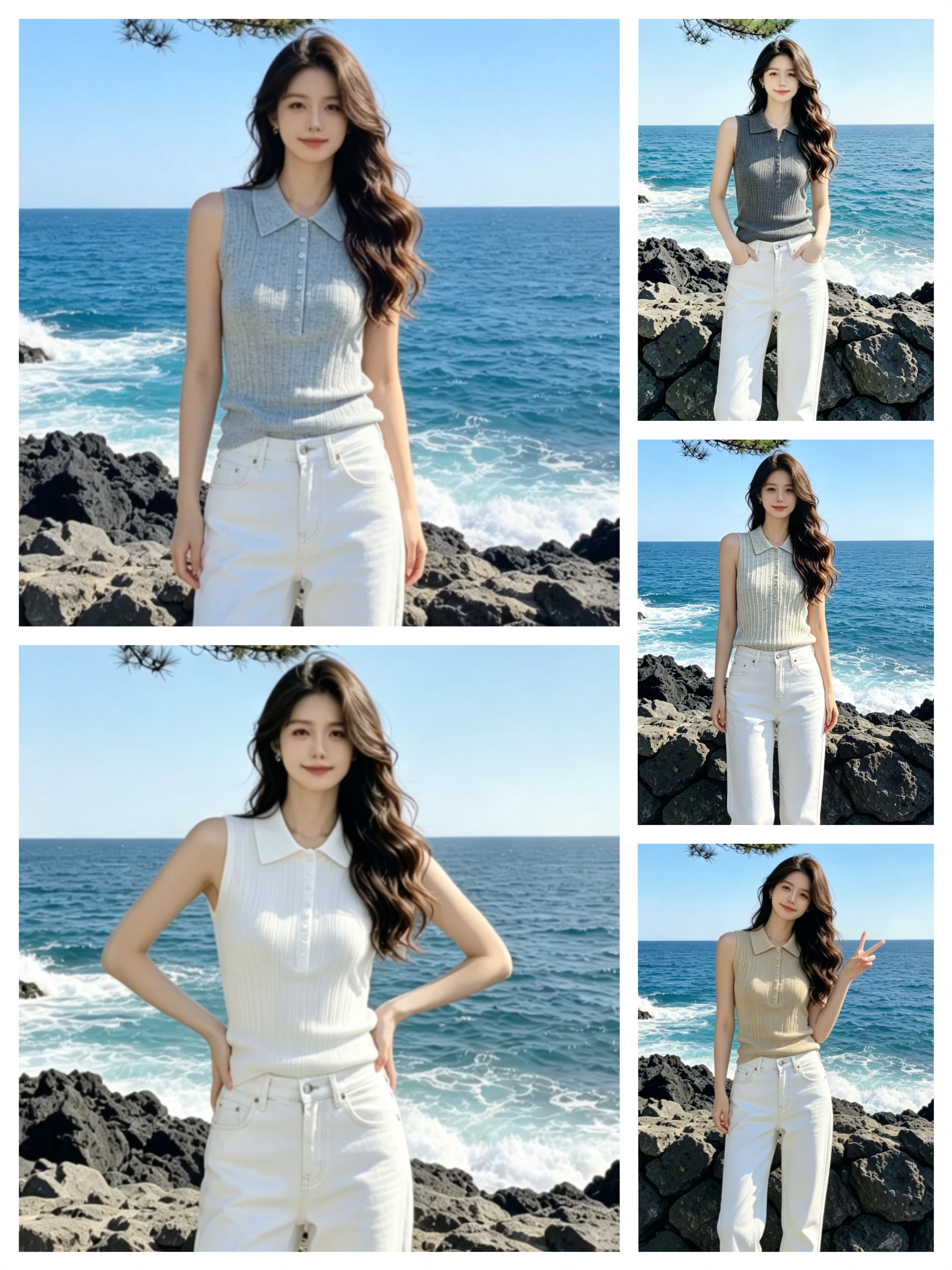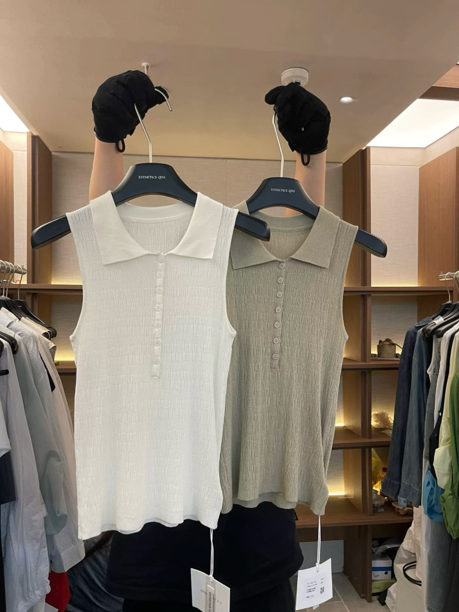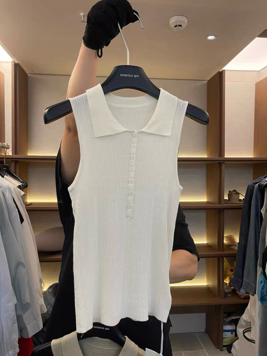다채로운 실 아마 uu 민소매 POLO 칼라 니트 스웨터 조끼 여성 여름 출퇴근 폴로 칼라 몸매 가꾸기 구덩이 기사 맨위 여성