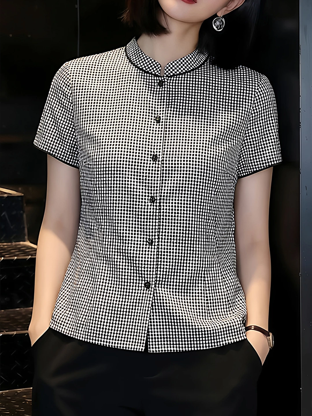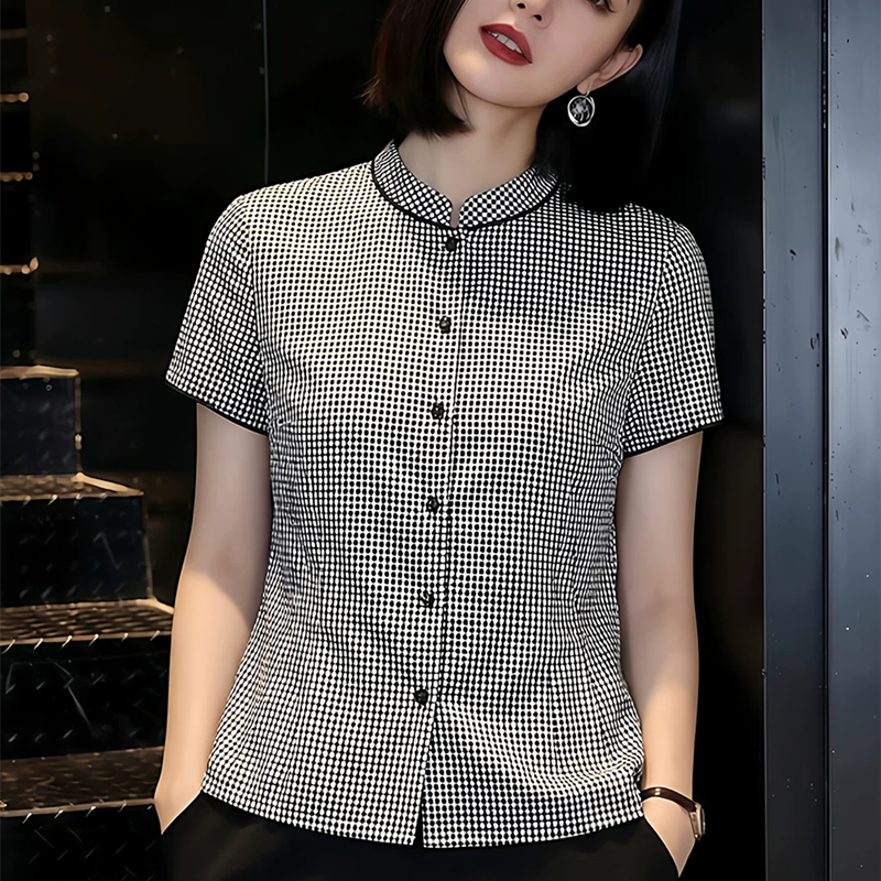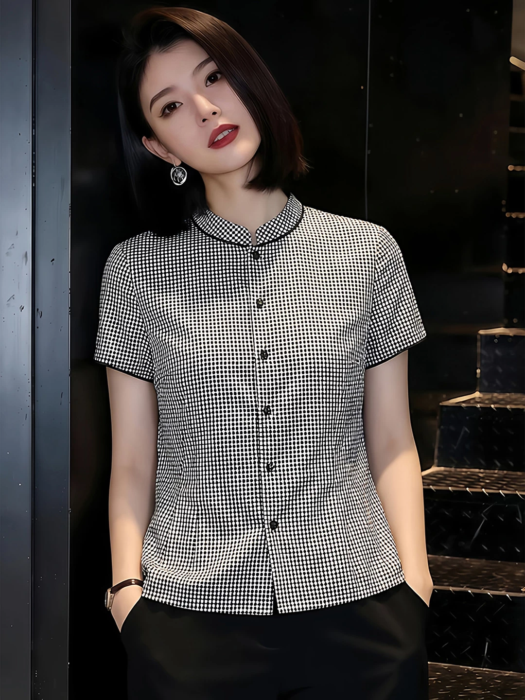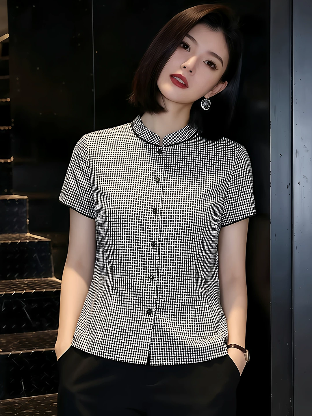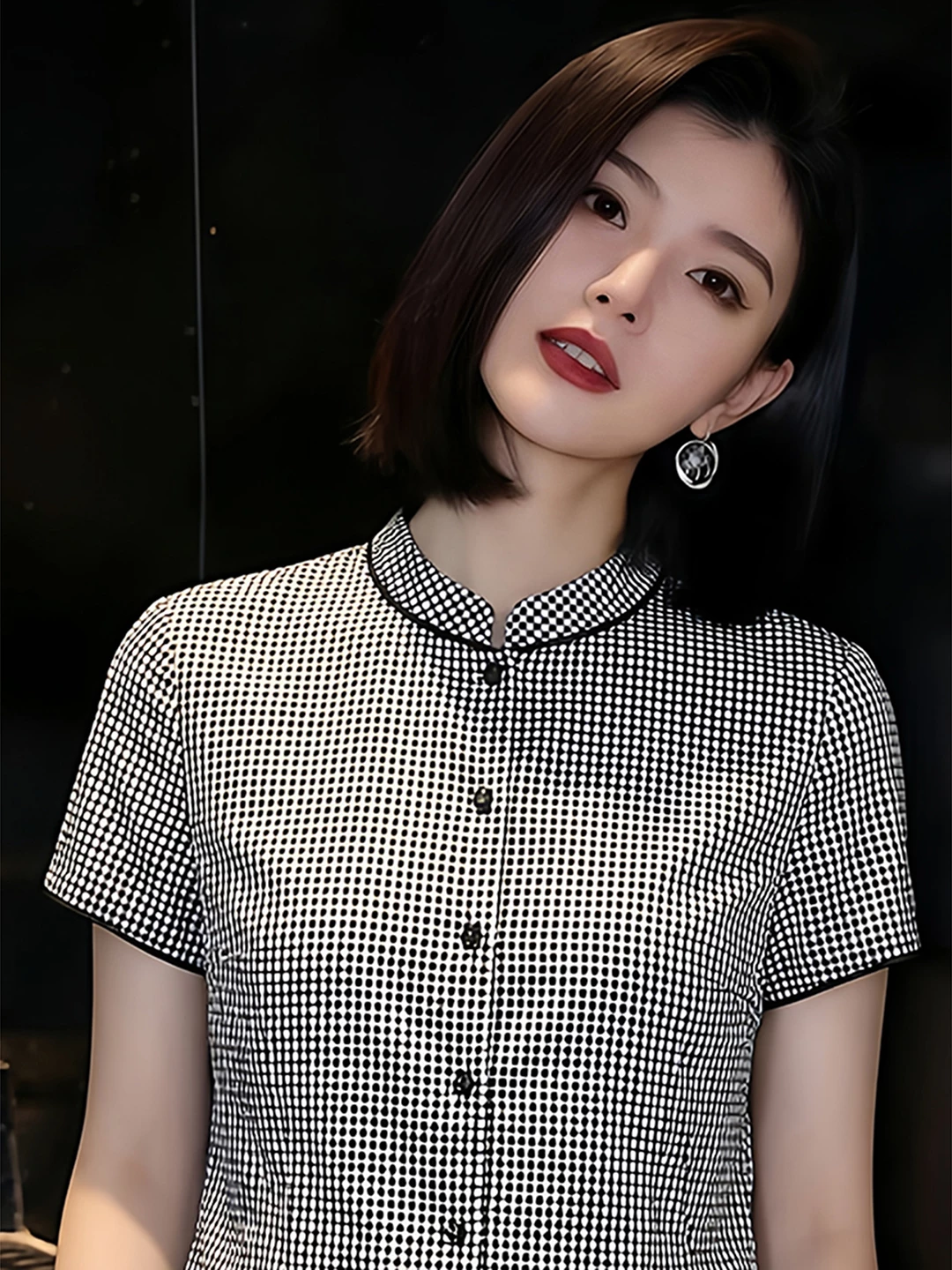 익스트림 제인 바람 폴로 칼라 품격 다용도 체크무늬 반팔 여성 셔츠 2026 여름 새로운 올해 인기 폭발 맨위