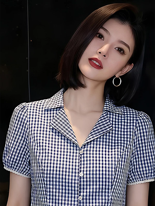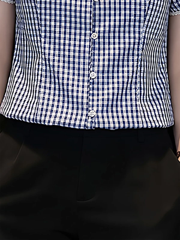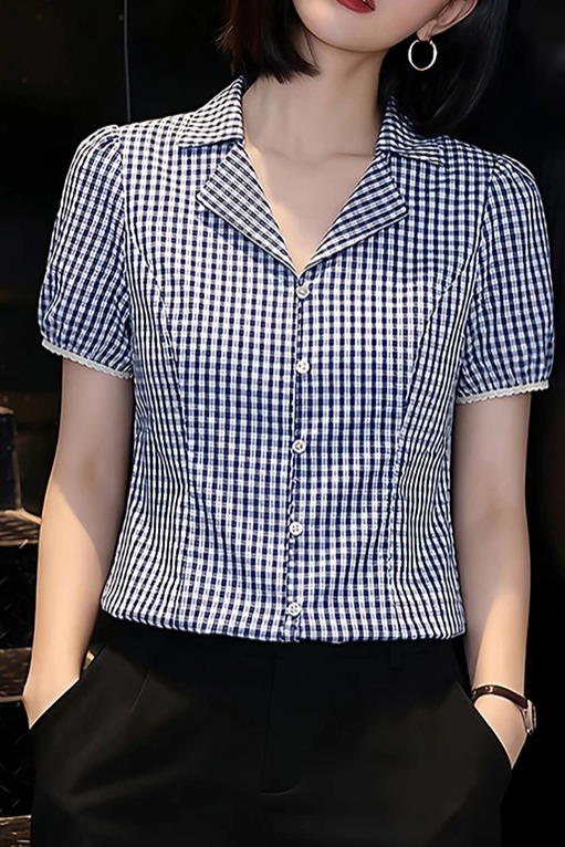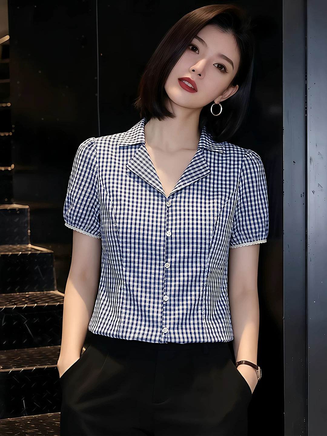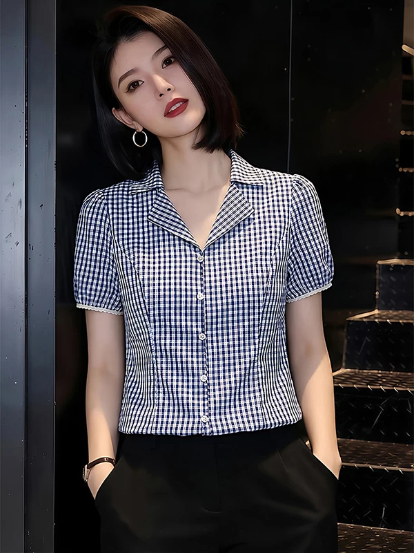익스트림 제인 바람 폴로 칼라 품격 다용도 체크무늬 반팔 여성 셔츠 2026 여름 새로운 올해 인기 폭발 맨위