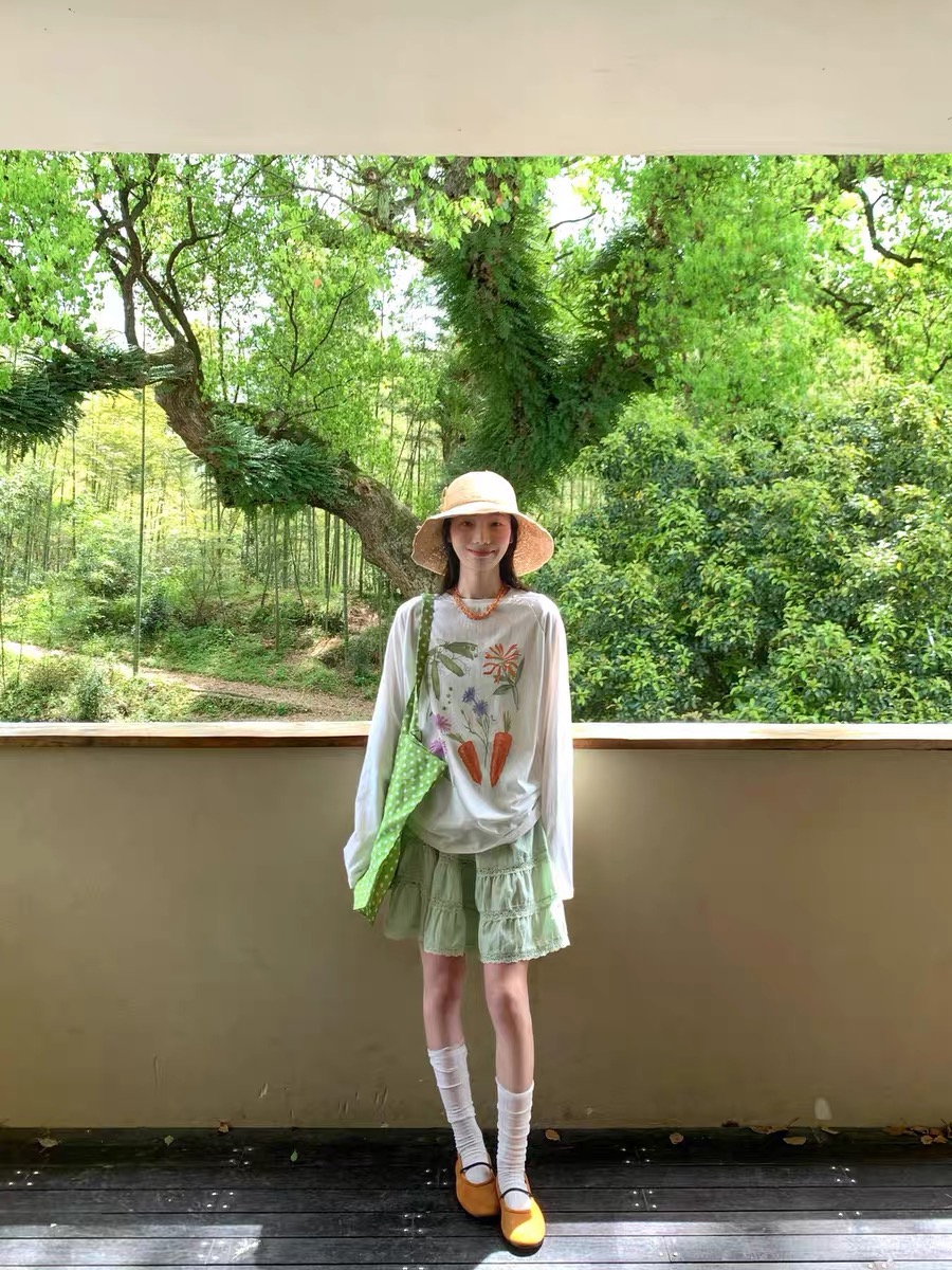 순수한 느슨함 센스 전체 집합 허리 수축 화이트 티셔츠 카키 색 반신 스커트 소금 부서 빛 요리 한 두 조각 세트 드레스 여성