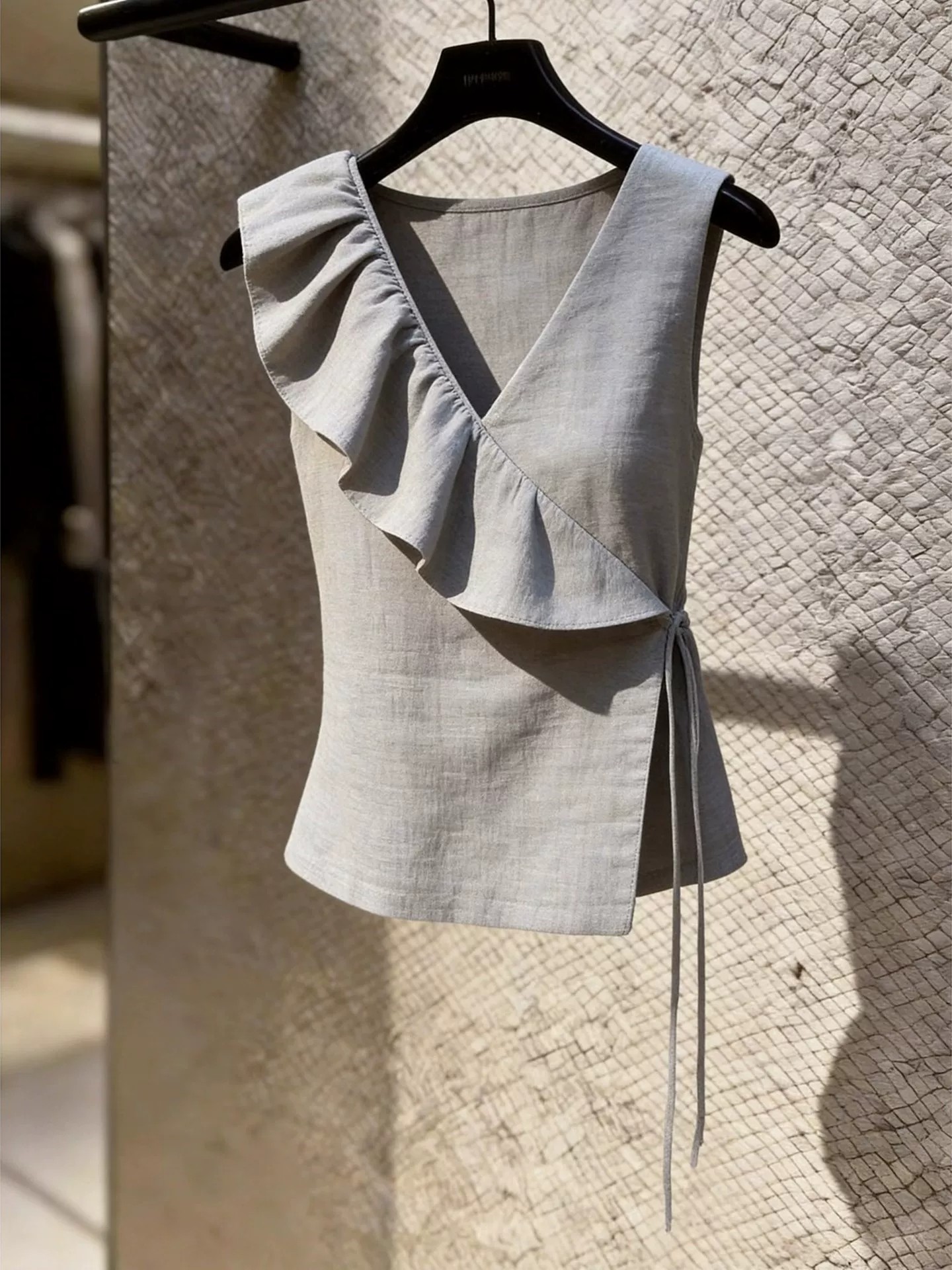 프랑스식 빛 럭셔리 V넥 프릴 여성 셔츠 2026 여름 새로운 고급 센스 출퇴근 우아함 자외선 차단 맨위 트렌디