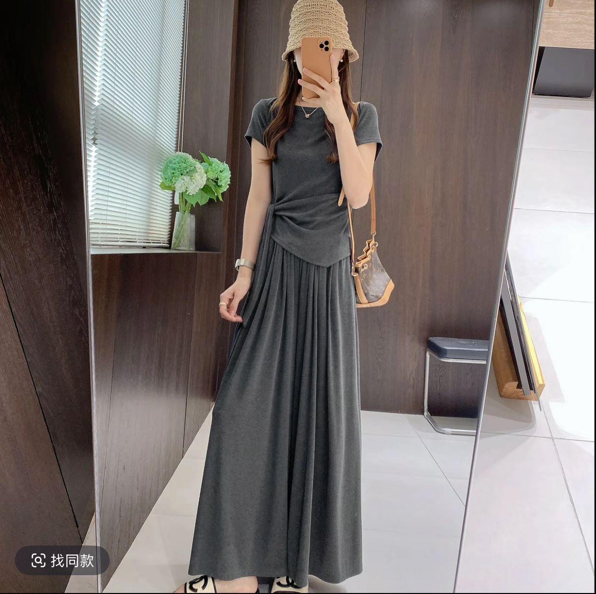 여유롭게 세트 여름 품격 슬림해 보이는 허리 수축 디스플레이 높음 투피스 세트 세트 한푸 6421a9