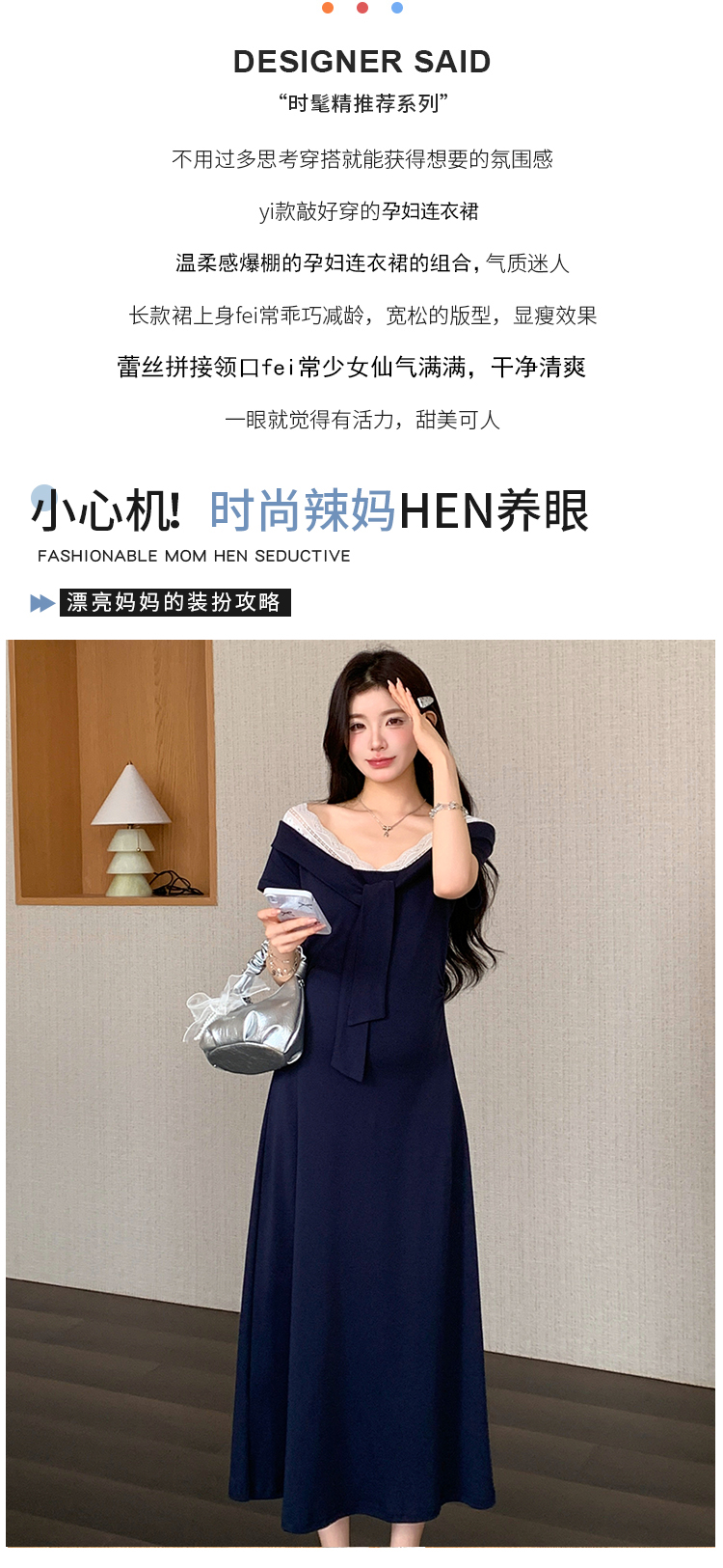 실사 지금 여름 프랑스식 레이스 조각 임신 엄마 빛 요리 한 바람 니트 드레스