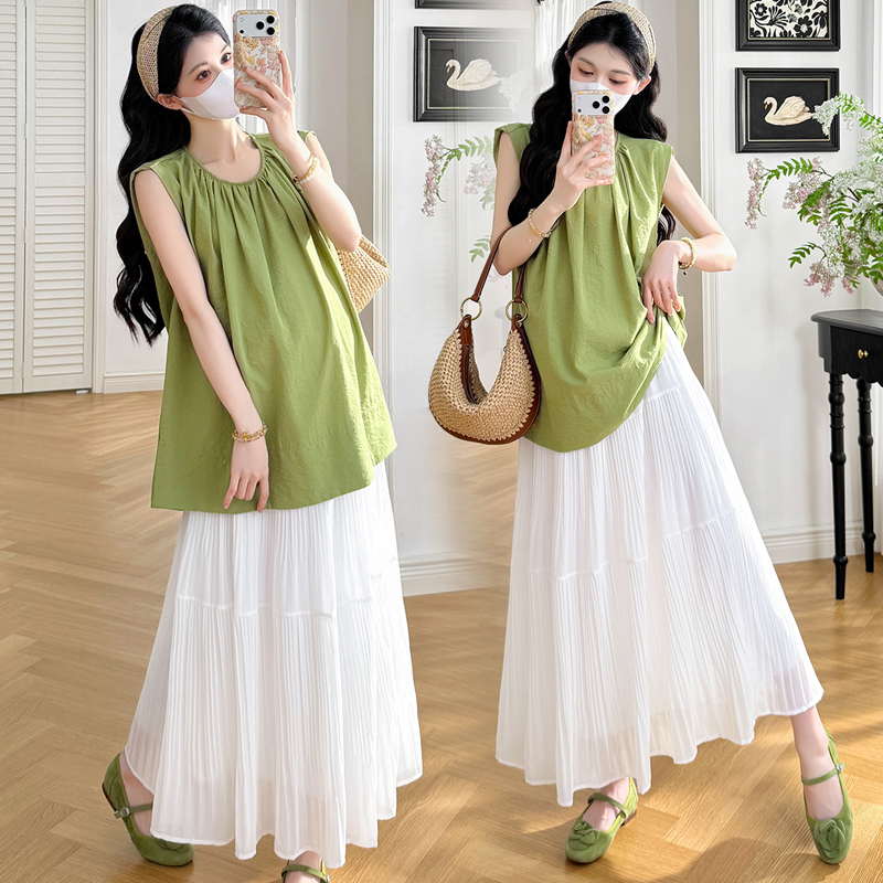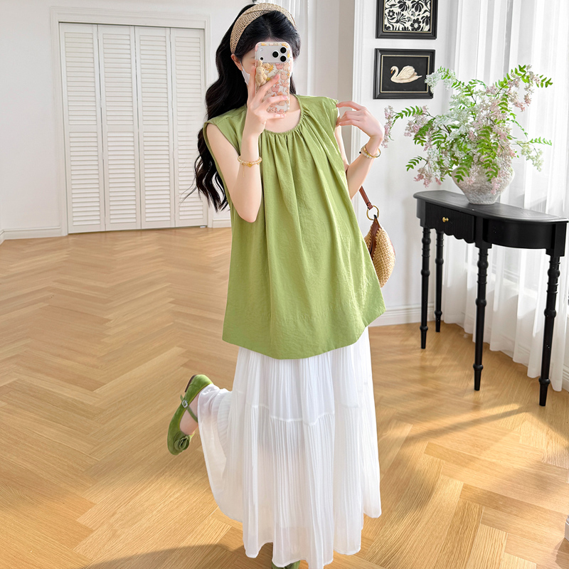 신제품 지금 임산부 부드러운 드레스 2026 여름 새로운 한 부서 품격 루즈핏 민소매 임신 기간 치마