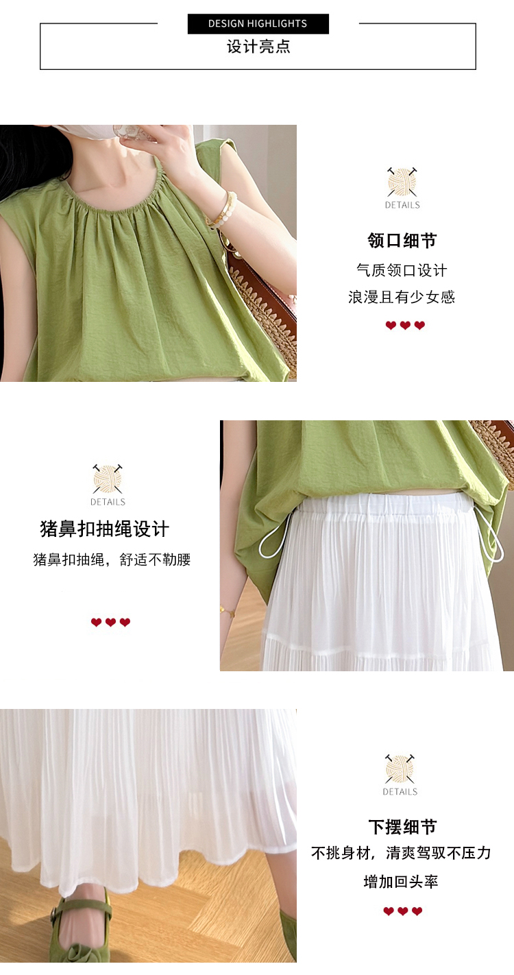 실사 지금 임산부 여름 새로운 프랑스식 부드러운 바람 달콤함 세트 루즈핏 품격 투피스 세트