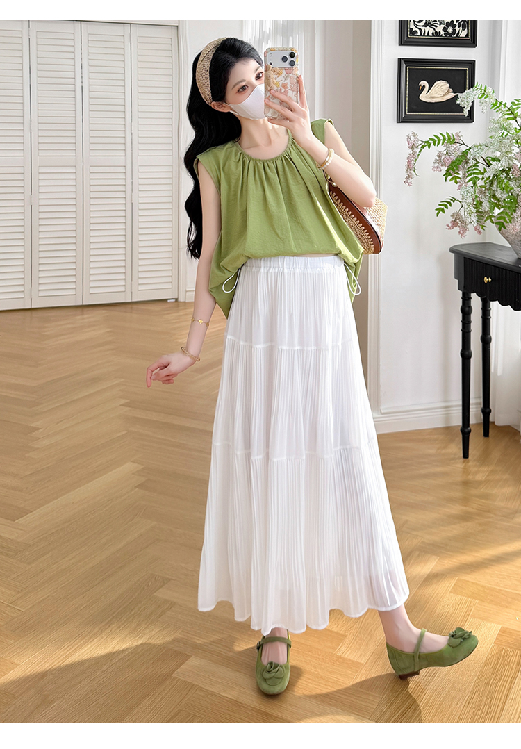 실사 지금 2026 봄 새로운 달콤함 망사 치마 루즈핏 임산부 맨위 복부 지지 반신 치마 세트
