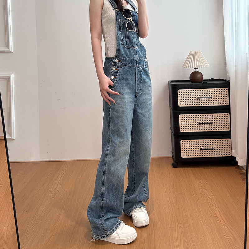 2026 여름 워크웨어 바람 멜빵 바지 스트레이트 청바지 여성 루즈핏 캐주얼 연령 감소 올인원 바지 넓은 다리 길이 바지