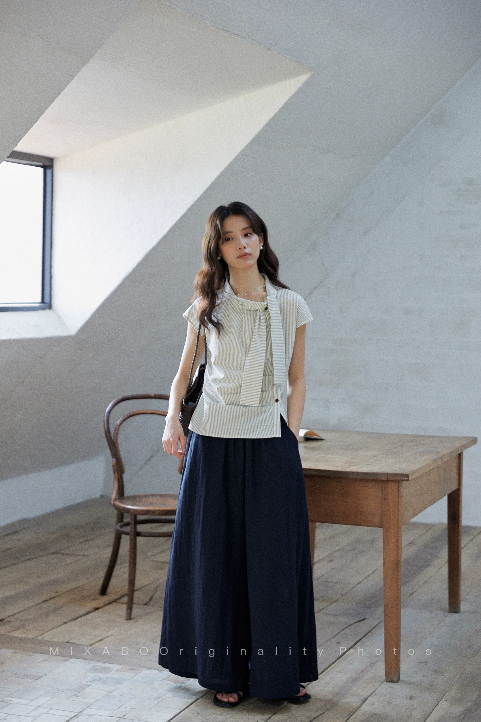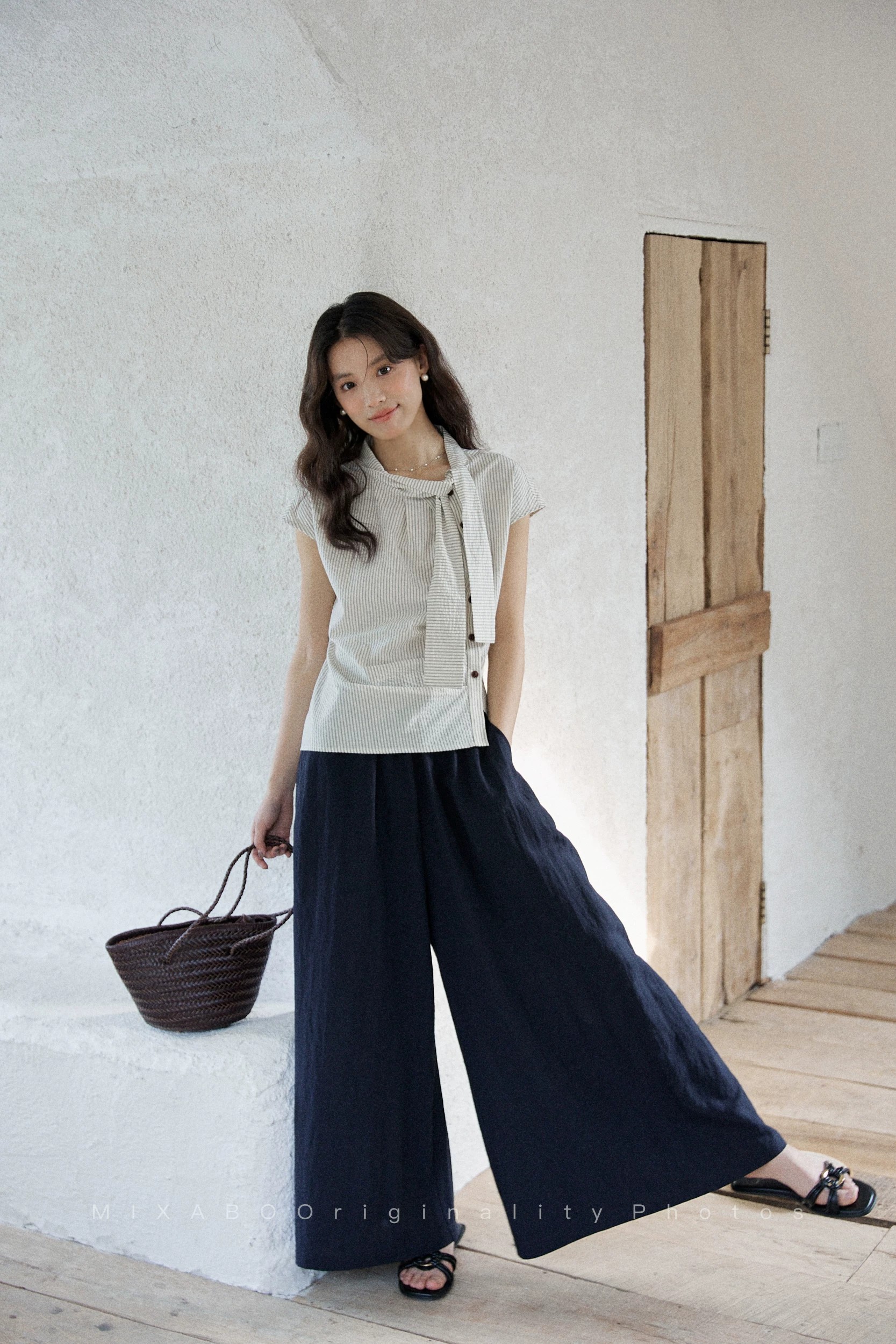 일본식 랜턴 와이드 레그 팬츠 여자 하이웨이스트 해군 바지 빅 사이즈 지방 mm 슬림해 보이는 작은 키 꽃밭 9부 바지