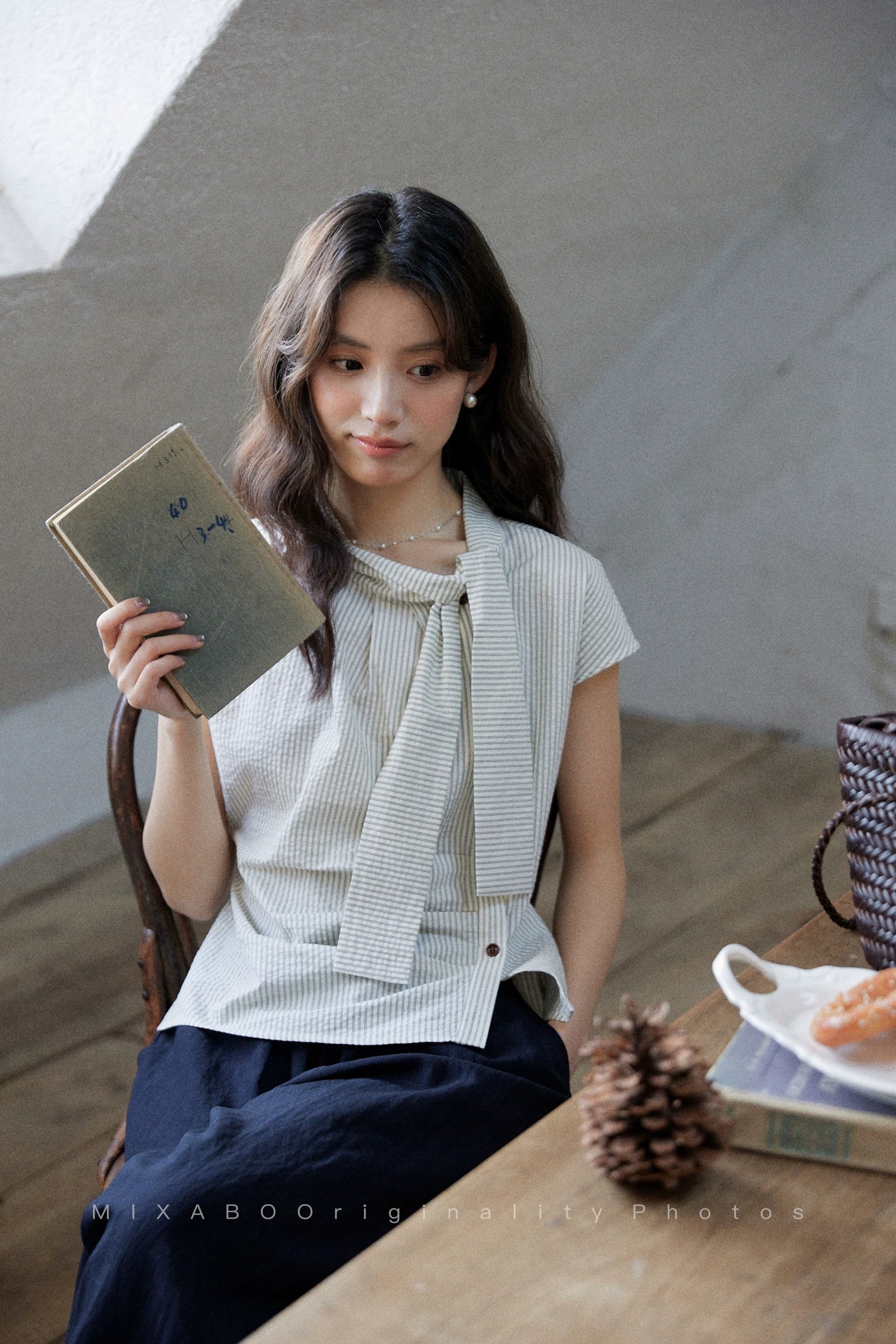 소나무 객실 달 고급 센스 품격 도트 무늬 여성 드레스 측면 허리 수축 리넨 면화 프랑스식 롱 스커트