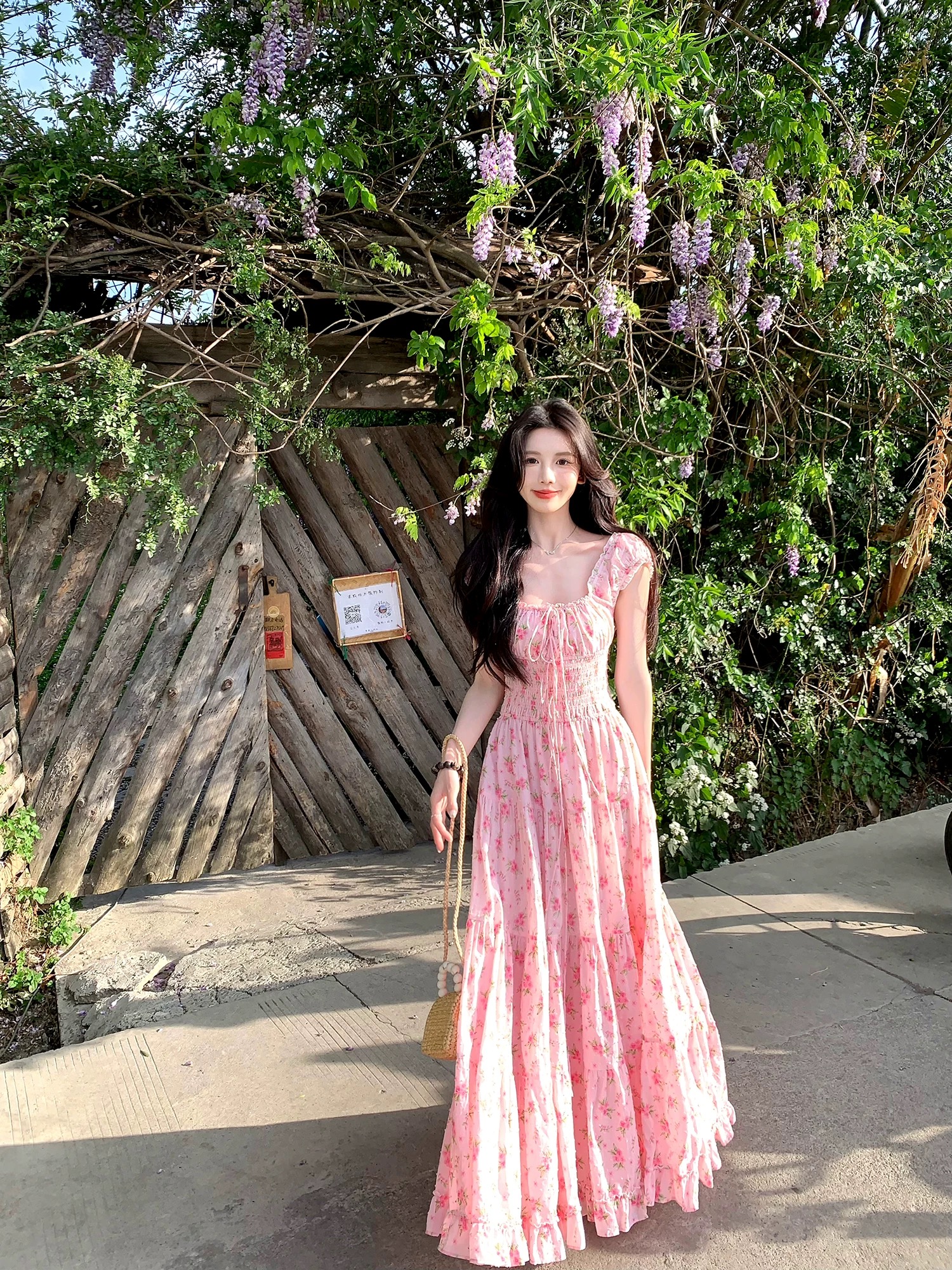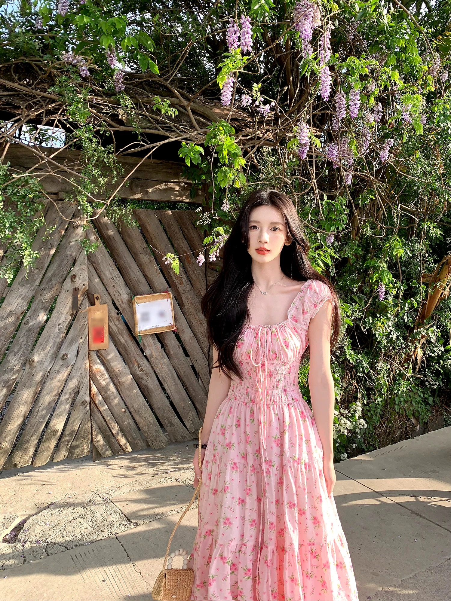 하나 달콤한 복숭아 yikett 모로코 정원 여름 꼬집기 허리 꽃무늬 여성 드레스 슬림해 보이는 원피스 치마