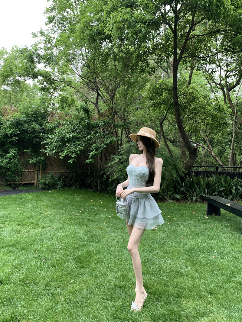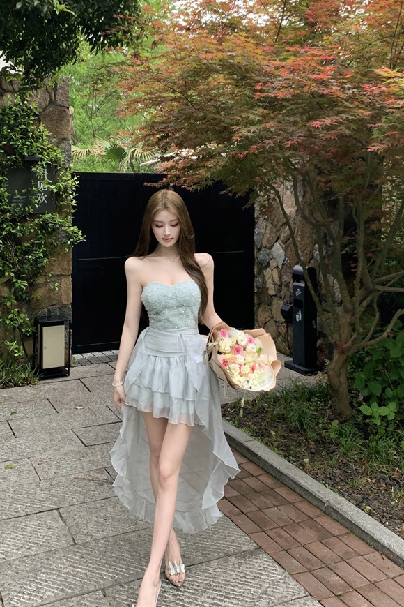 실사 핫걸 세트 여성 2026 튜브탑 생선뼈 슬립 맨위 망사 반신 스커트 투피스 세트