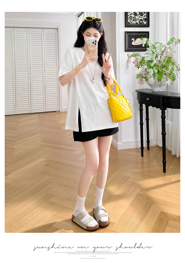 실사 새로운 출산 착용 여름 드레스 패션 미니멀리즘 관대 한 다용도 루즈핏 슬림해 보이는 디자인 센스 트임 맨위