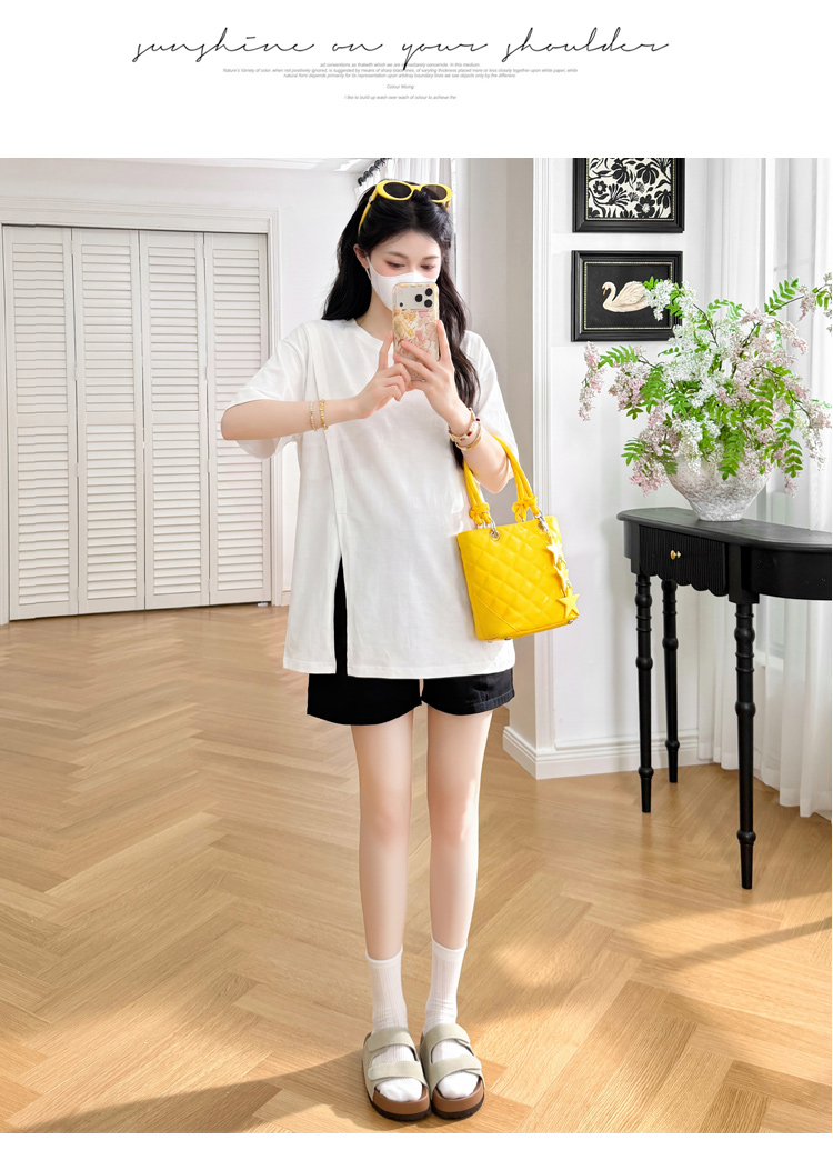 실사 새로운 출산 착용 여름 드레스 패션 미니멀리즘 다용도 루즈핏 슬림해 보이는 연령 감소 캐주얼 디자인 센스 트임 맨위