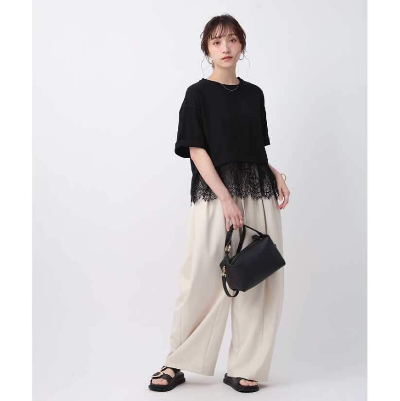 일본식 디자인 센스 레이스 조각 트임 반팔 맨위 여성 2026 여름 새로운 다용도 티셔츠