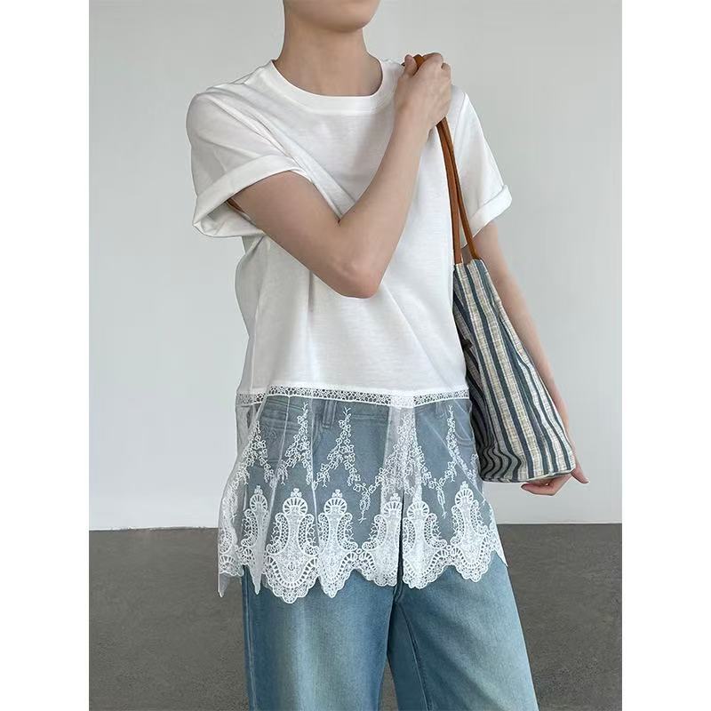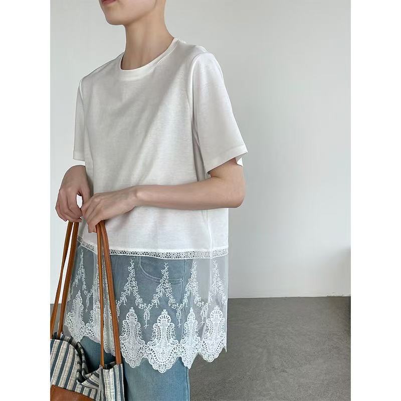 국경 간 일본식 디자인 센스 레이스 조각 반팔 맨위 여성 2026 여름 새로운 다용도 티셔츠