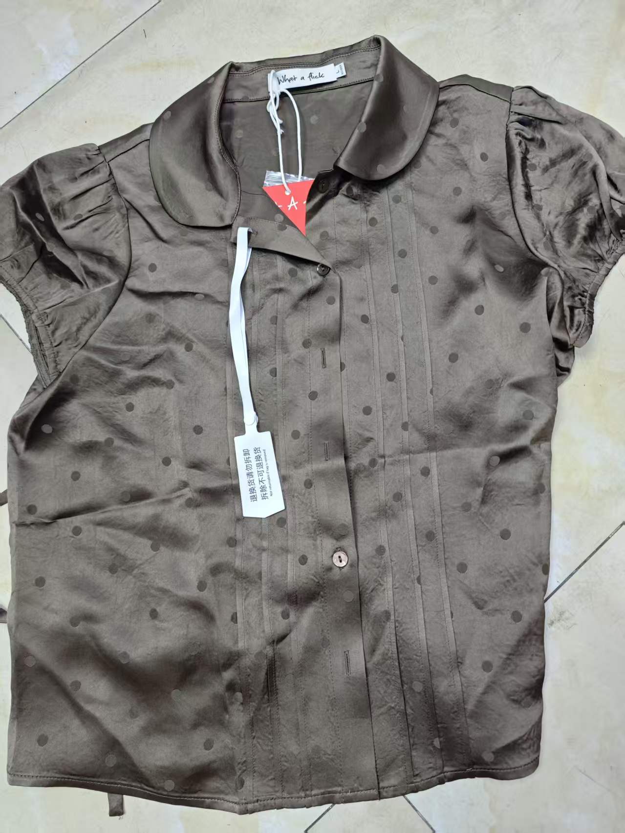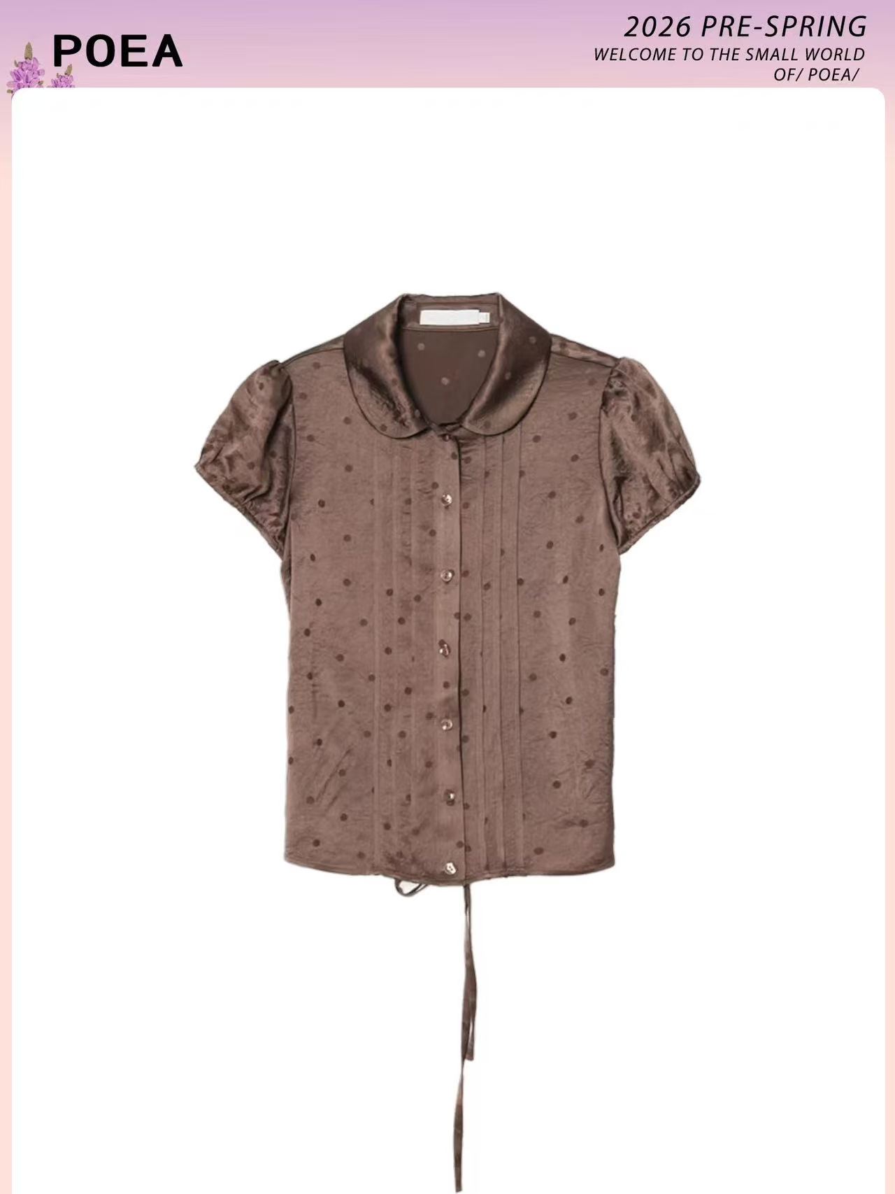 레트로 도트 무늬 반팔 여성 셔츠 거품 소매 펌프 로프 폴로 칼라 허리 수축 스트랩 맨위 품격 다용도 도트