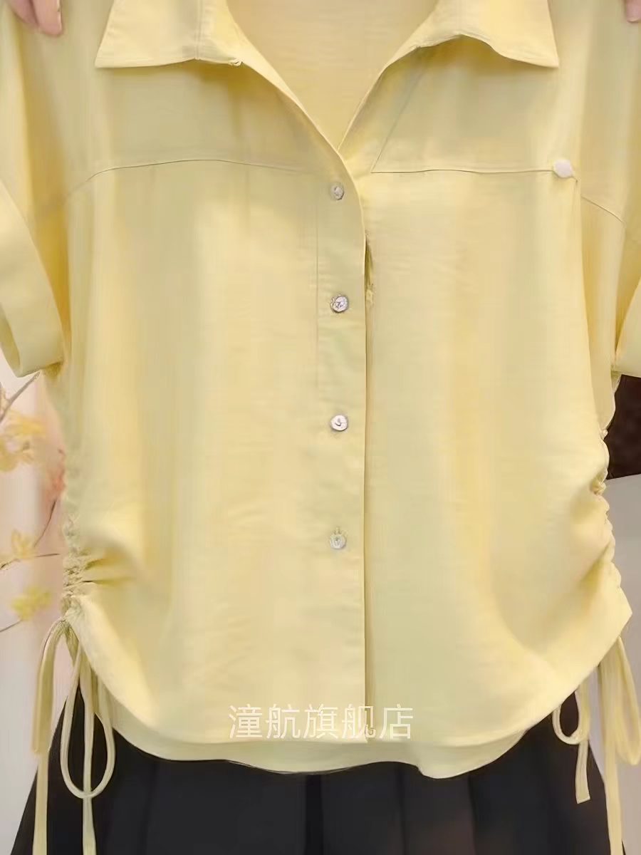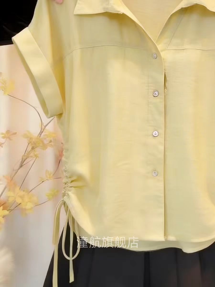 황색 폴로 칼라 측면 펌프 로프 슬림해 보이는 반팔 셔츠 2026 여름 섹션 슈퍼 잘 생긴 연령 감소 패션 출퇴근 맨위 여성