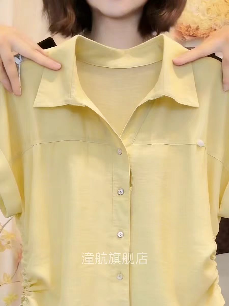 일본식 국경 간 대외 무역 여름 새로운 반팔 박쥐 셔츠 루즈핏 품격 슬림해 보이는 라운드 넥 캐주얼 다용도 쉬폰 블라우스