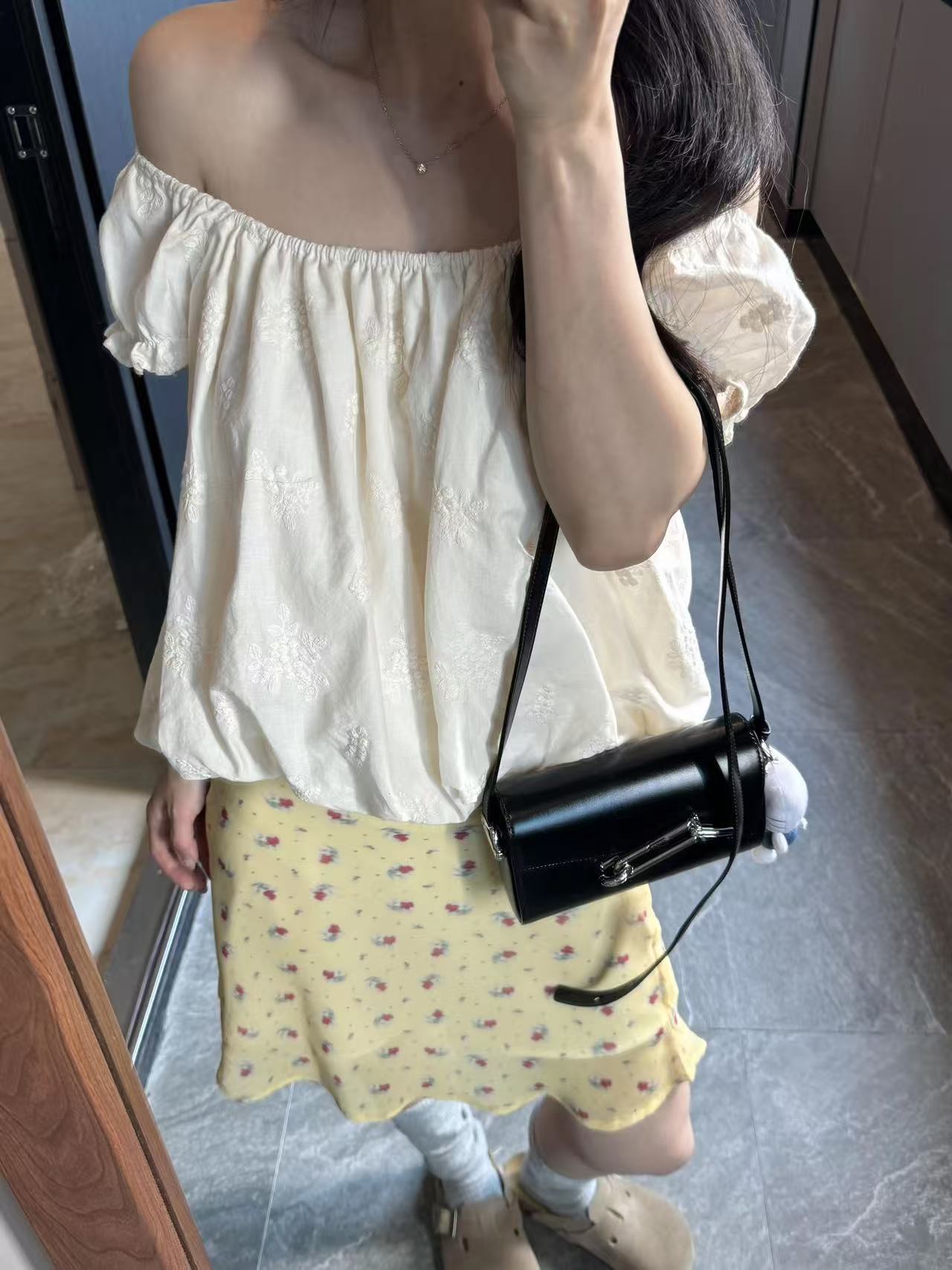 레트로 세트 염색 펌프 로프 튜브탑 여성 2026ss 휴가 바람 꽃 란 살구 색상 쇼트 스타일 오프숄더 맨위