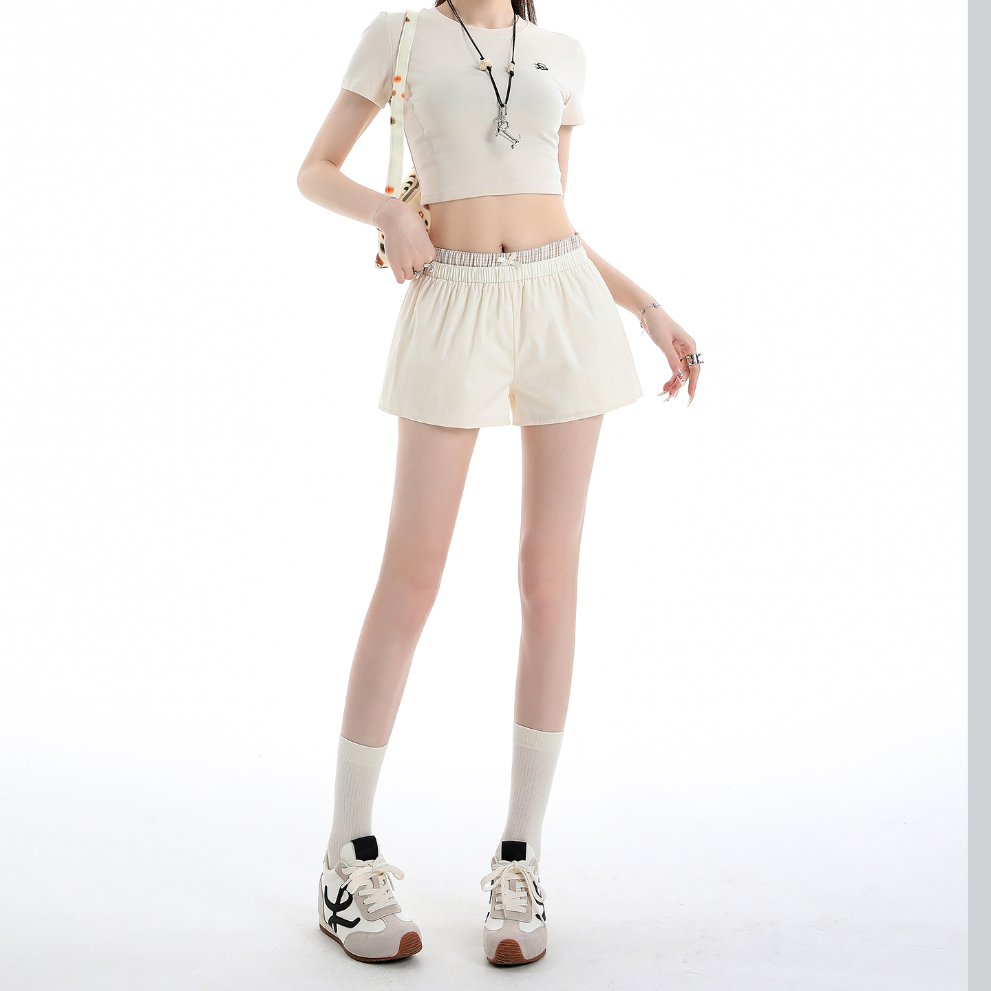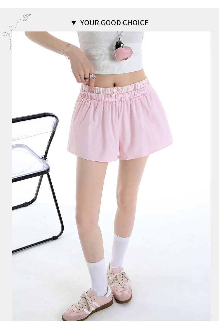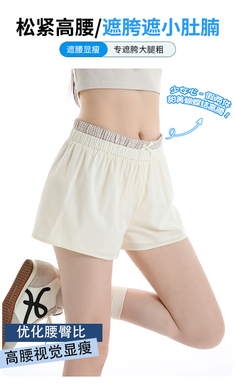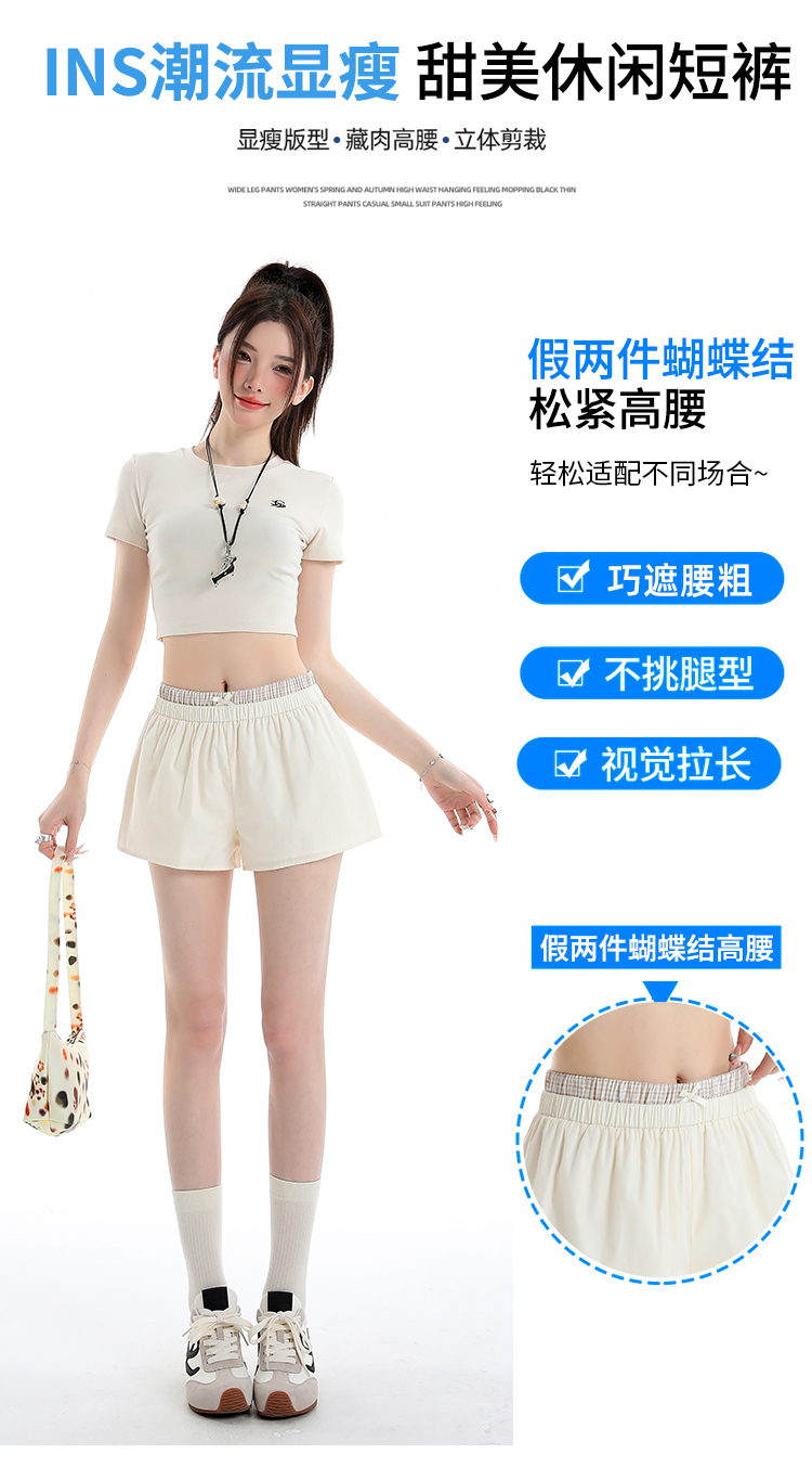 실사 2026 여름 새로운 한 부서 페이크 레이어드 반바지 하이웨이스트 슬림해 보이는 나비 매듭 핫걸 캐주얼 핫 바지 여성