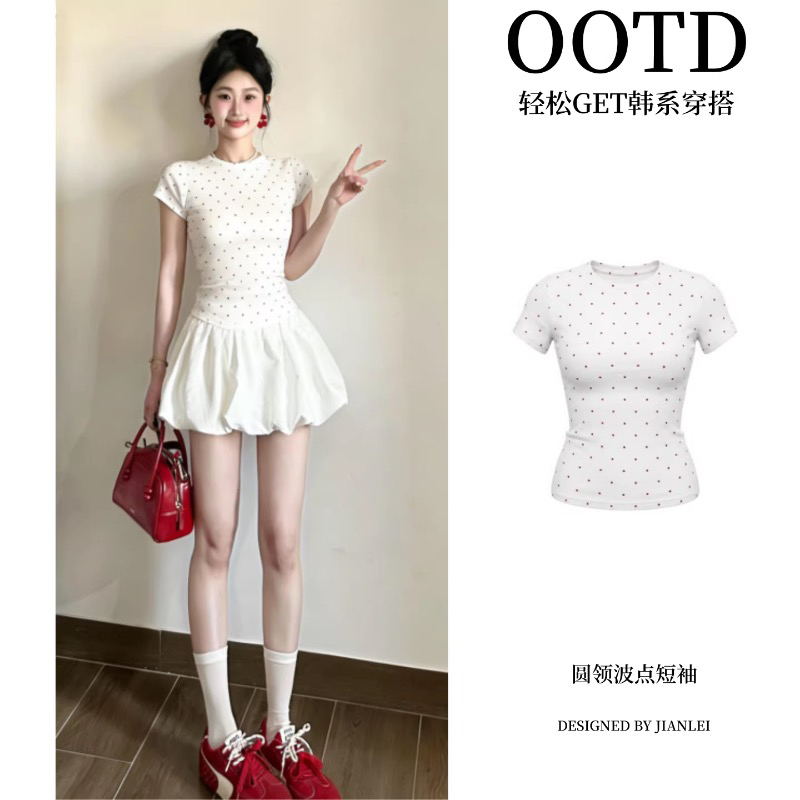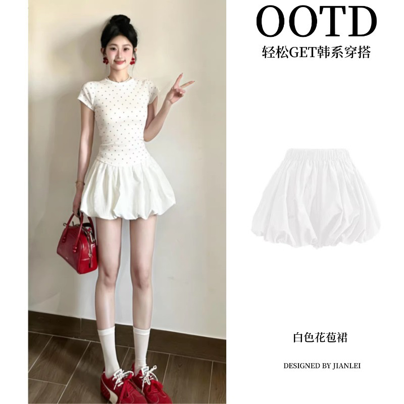 화이트 구름 꽃밭 치마 아이들 이른 봄 아름다운 세트 도트 무늬 반팔 티셔츠 여름 고유 한 아름다운 전체 집합
