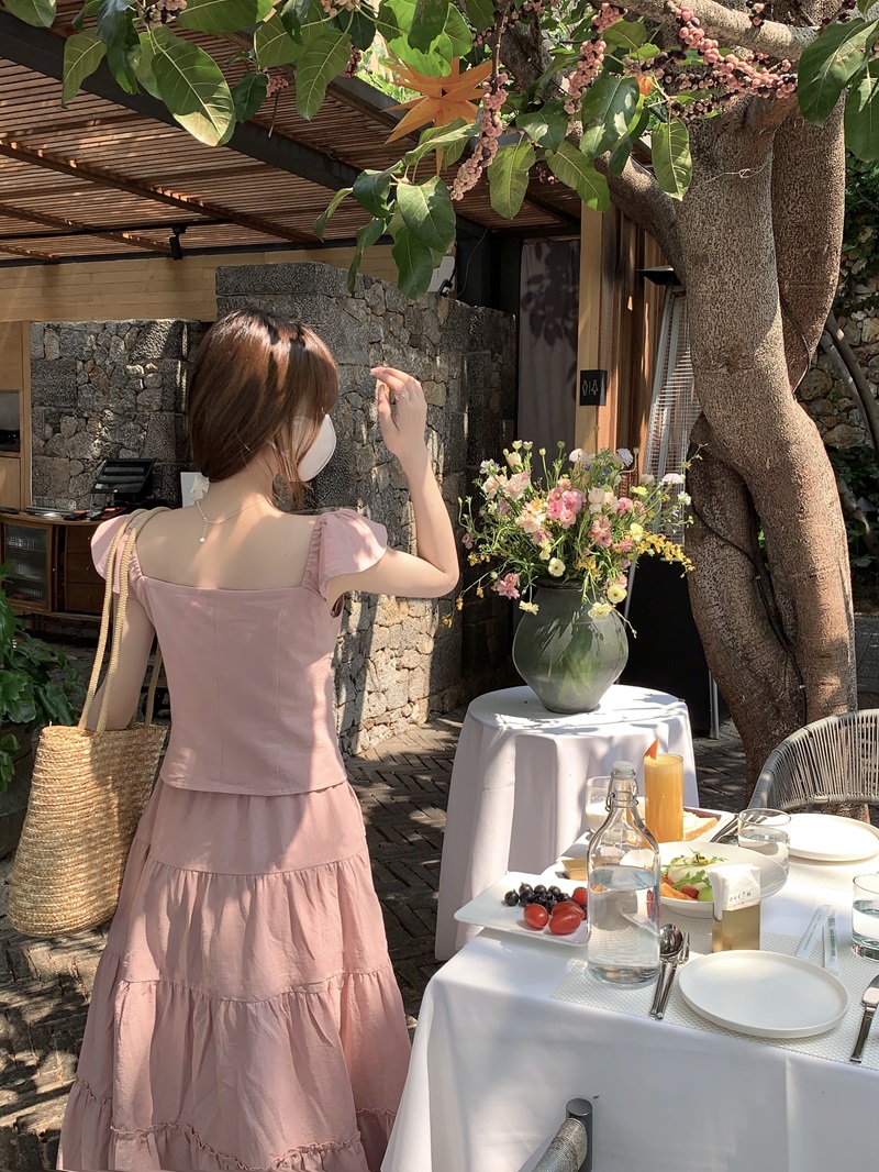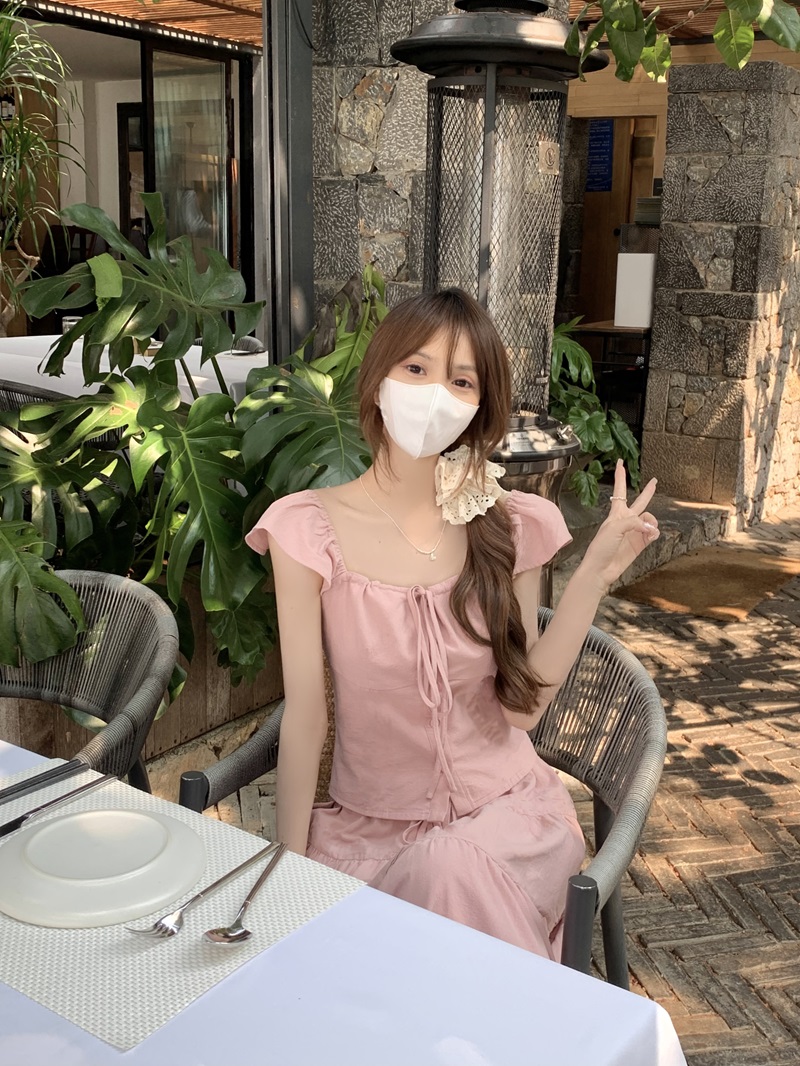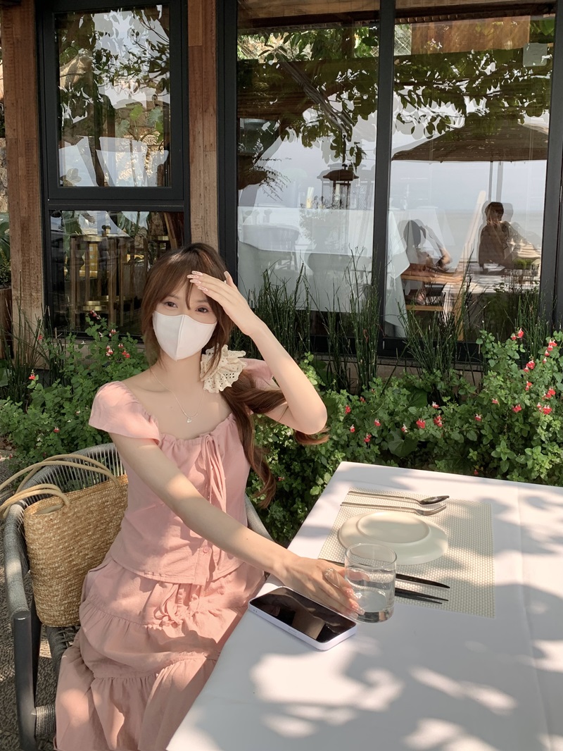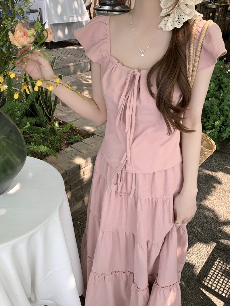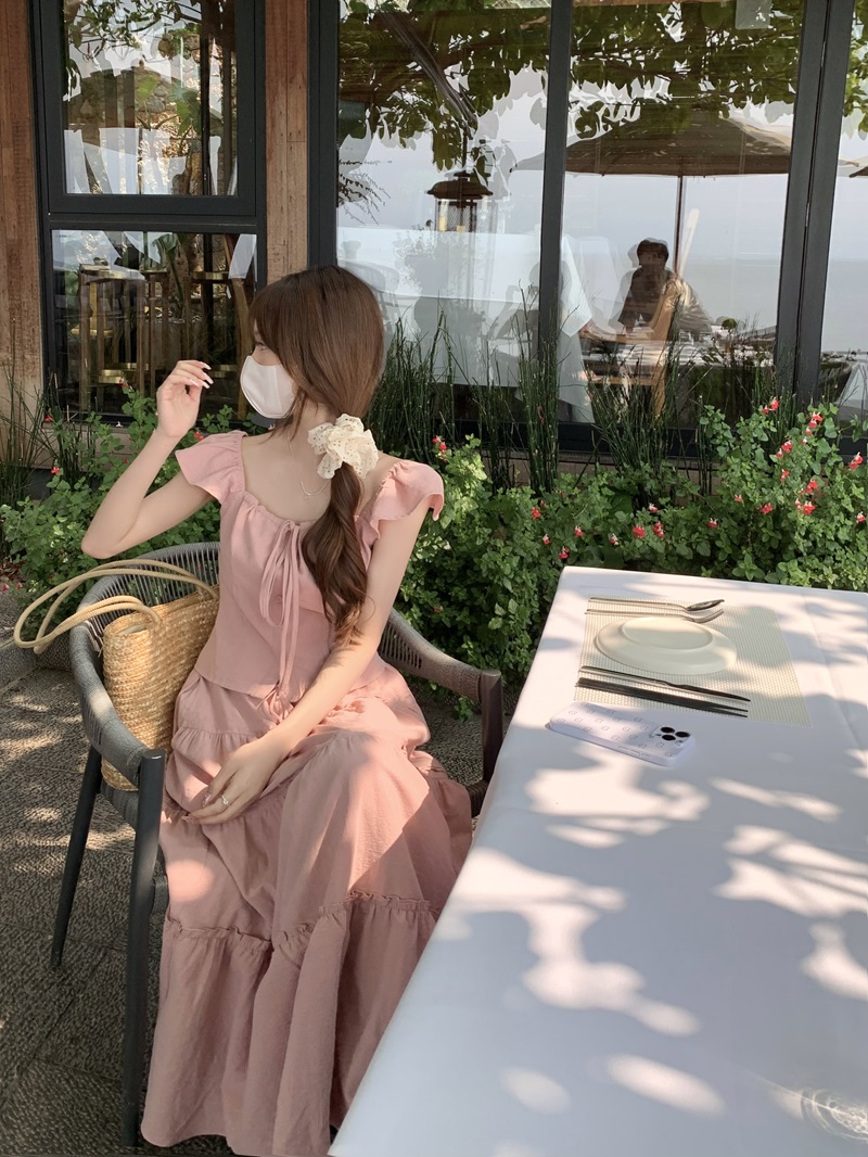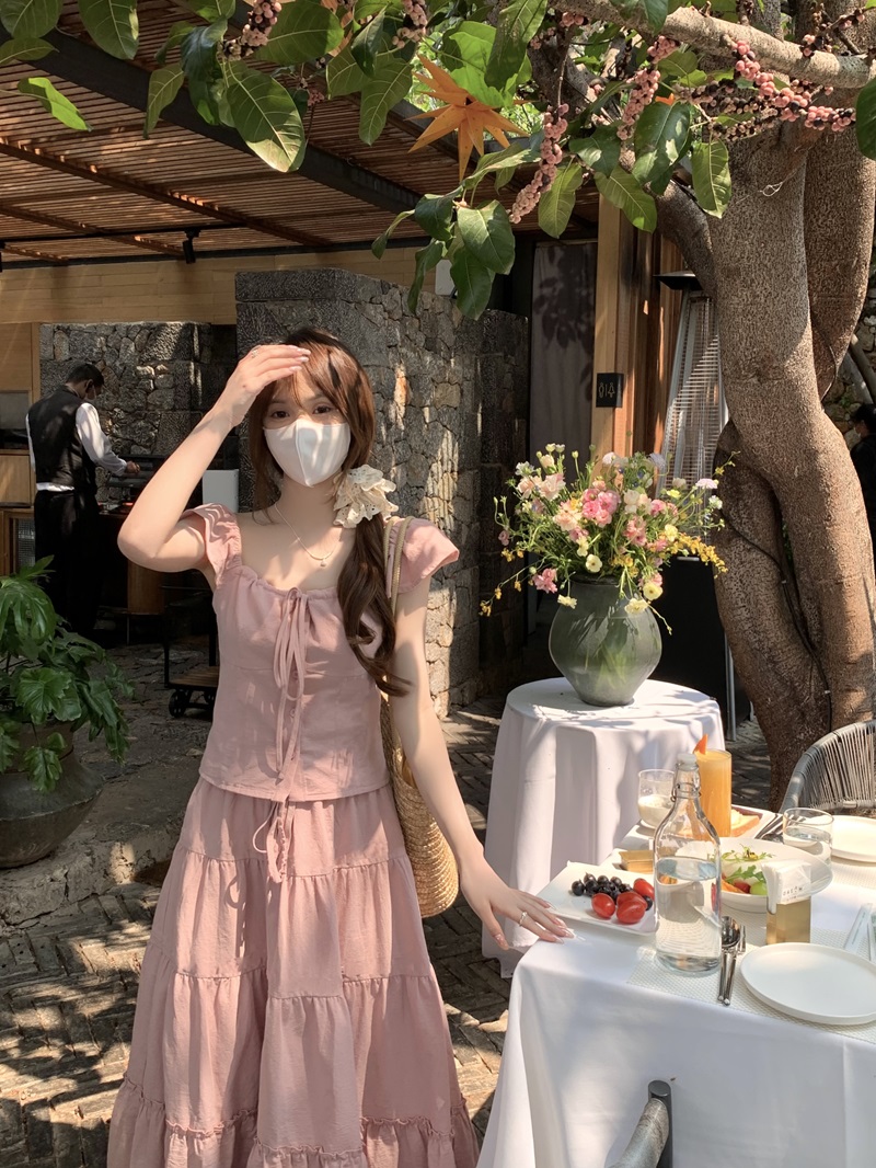 실사 정가 휴가 바람 첫사랑 작은 날다 소매 맨위 달콤함 반신 치마 세트