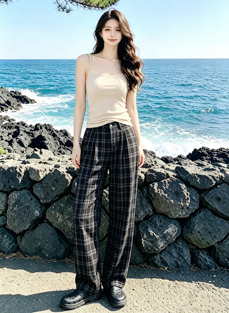 실사 바지 아이들 여름 2026 새로운 도루 센스 스트레이트 좁은 에디션 와이드 레그 팬츠 하이웨이스트 요가 바지 운동 바지 웨이 바지